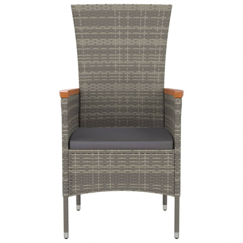 Diese Gartenstühle sind eine perfekte Bereicherung für deinen Garten bzw. deine Terrasse und hinterlassen einen bleibenden Eindruck! Langlebiges Material: PE-Rattan, auch als Poly Rattan bekannt, ist witterungsbeständig und pflegeleicht. Seine Oberfläche weist lange Zeit eine ansprechende Optik auf. Es ist kostengünstiger als andere Materialien und bietet gleichzeitig hohe Qualität, Komfort und einen ästhetisches Look. Stabiler Rahmen: Stahl ist ein außergewöhnlich hartes und starkes Material. Er bietet Robustheit und Stabilität.Komfortables Sitzerlebnis: Dank der dick gepolsterten Sitzkissen sind die Stühle sehr bequem.Elegante Armlehnen: Die Armlehnen der Outdoor-Stühle sind mit massivem Akazienholz verziert, was dem Stuhl einen Hauch von rustikalem Charme verleiht. Gut zu wissen:Um die Montage so einfach wie möglich zu machen, wird jedes Produkt mit einer Anleitung geliefert. Hinweis:Damit deine Gartenmöbel lange schön bleiben, empfehlen wir dir, sie mit einer wasserdichten Hülle zu schützen.