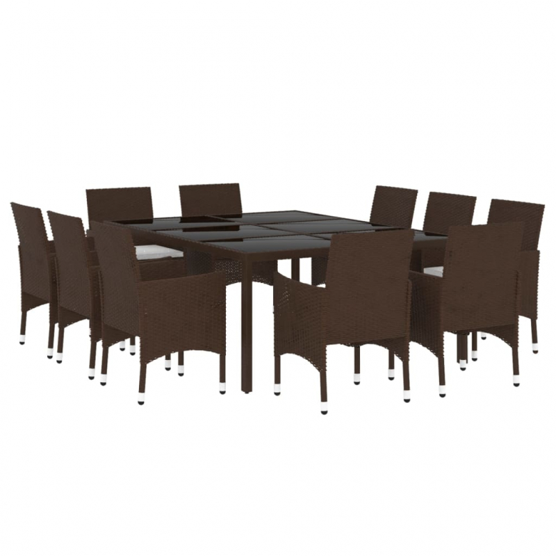 Genießen Sie eine angenehme Mahlzeit oder Ihren Nachmittagstee in Ihrem Außenbereich an dieser Garten-Essgruppe! Mit ihrem eleganten Design wird sie ein echter Hingucker in Ihrem Garten oder auf Ihrer Terrasse sein! Hochwertiges Material: Die robusten Stahlrahmen sind mit wetterfestem, handgeflochtenem PE-Rattan umwickelt. Diese Outdoor-Essgruppe ist daher rost- und schimmelbeständig und bietet jahrelange Entspannung.Robuste und stabile Struktur: Die Stahlrahmen sorgen für Robustheit und Stabilität.Komfortable Stühle: Mit geschwungenen Armlehnen und Rückenlehnen versehen, weisen die Gartenstühle eine ergonomische Form auf, um höchsten Komfort zu bieten. Die mitgelieferten Kissen sorgen für zusätzlichen Halt und deren Bezüge mit Reißverschluss sind abnehmbar und somit waschbar. Hinweis:Um die Lebensdauer deiner Gartenmöbel zu verlängern, empfehlen wir dir, sie mit einer wasserdichten Hülle zu schützen.