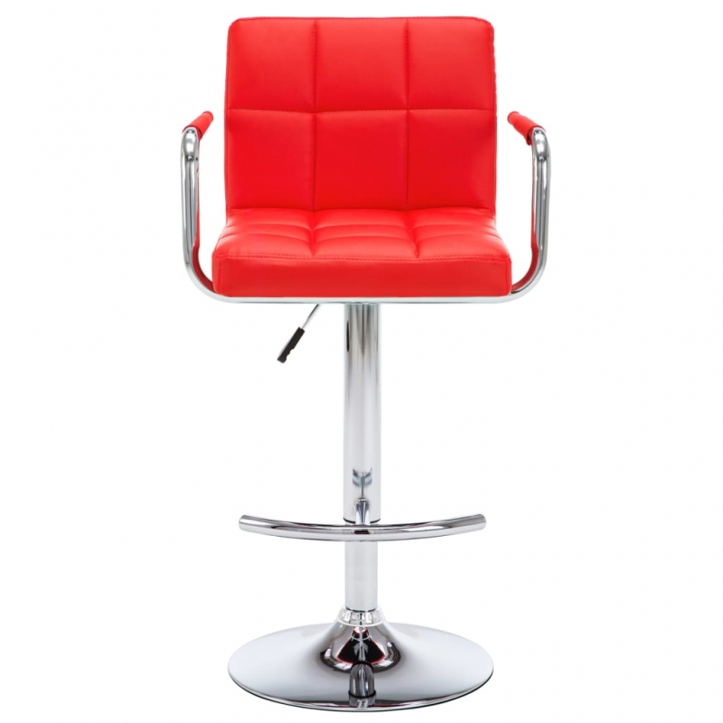 Dieses elegante und moderne Barhocker-Set passt in einer Vielzahl von Räumen, z. B. zu Hause, im Büro, in der Bar, im Café und vielen mehr. Der Sitz und die Rückenlehne, mit hochwertigem Kunstleder bezogen, bieten ein komfortables Sitzgefühl. Das robuste, verchromte Stahlgestell macht die Hocker zudem sehr robust und langlebig. Mit dem praktischen Gasfedermechanismus können Sie die Sitzhöhe ganz nach Ihren Wünschen einstellen. Zusätzlich bieten die eingebauten Fußstützen und Armlehnen zusätzlichen Halt und Komfort.