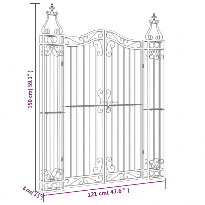 Dieses dekorative Gartentor mit eleganten Schmiedekunst-Pfosten bietet einen idealen Eingangspunkt am Zaun um deinen Garten oder deine Terrasse. Langlebiges Material: Das Gartentor ist aus pulverbeschichtetem Schmiedeeisen gefertigt um eine lange Lebensdauer zu gewährleisten. Schmiedeeisen ist ein belastbares, formbares, korrosionsbeständiges und dehnbares Eisen, das sich perfekt für den Einsatz im Außenbereich eignet.Abschließbar: Das Gartentor aus Schmiedeeisen ist mit einer Bolzenverriegelung für das schnelle Abschließen und Öffnen ausgestattet.Schmiedekunst-Design: Die Pfosten aus Schmiedeeisen bieten eine starke Stütze und sicheren Halt und stellen attraktive Ergänzung für deinen Hof oder Garten dar.Elegantes Aussehen: Elegante Formen und dekorative Akzente machen das Tor zu einem optischen Highlight im Außenbereich.