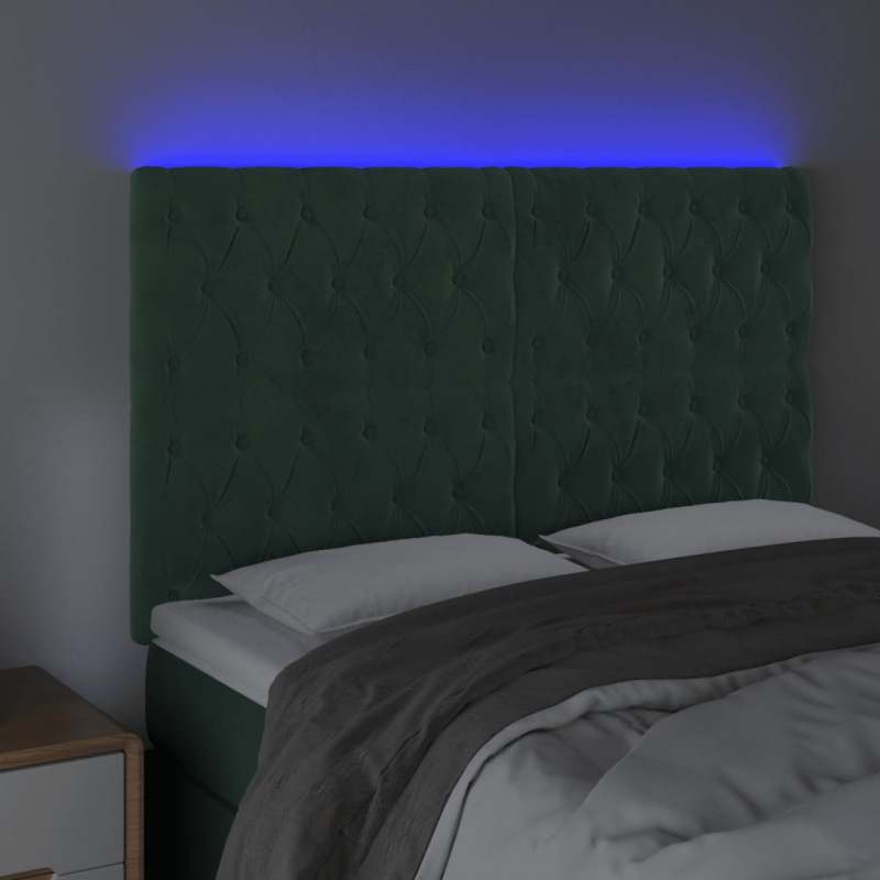 LED Kopfteil Dunkelgrün 144x7x118/128 cm Samt