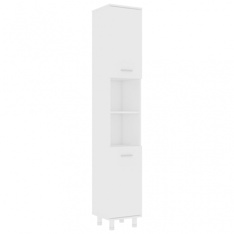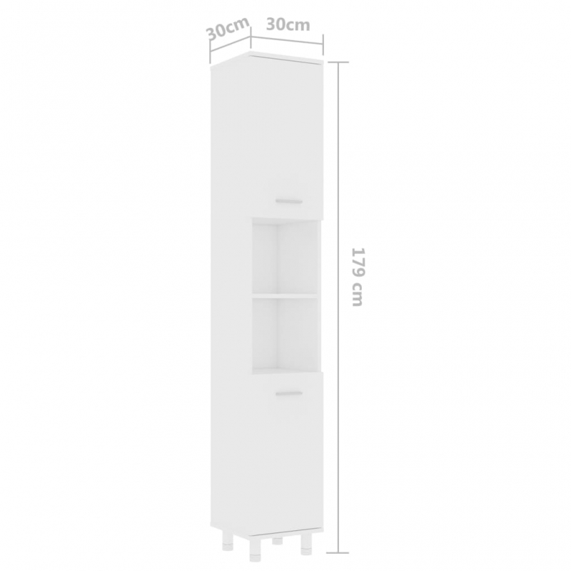 Mit diesem Badezimmerschrank kannst du zusätzlichen Stauraum im Ihrem Badezimmer schaffen. Die klaren Linien und das schlanke Design fügen sich perfekt in jedes Badezimmer ein. Dieser schicke Schrank besteht aus Holzwerkstoff und ist daher robust und stabil. Dieses Badmöbel verfügt über 6 Fächer und 2 Türen und bietet verschiedene Aufbewahrungsmöglichkeiten sowie zusätzlichen Platz für die Aufbewahrung von Badartikeln in deinem Badezimmer. An jeder Tür befindet sich ein Griff zum besseren Öffnen und Schließen. Der Schrank ist leicht mit einem feuchten Tuch zu reinigen.