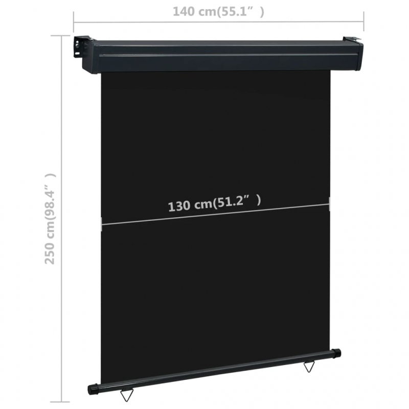 Diese schlichte, aber stilvolle Seitenmarkise bietet Privatsphäre und schafft einen gemütlichen Ort. Diese Markise ist sowohl ein Windschutz als auch ein Sonnenschutz. Die Blende ist aus UV-beständigem, reißfestem Polyester hergestellt. Die Aluminiumwalze sorgt für ein reibungsloses Abrollen. Sie verfügt über eine Selbstsperrfunktion, so dass sie an jeder Stelle angehalten werden kann. Die Markise kann auf bis zu 250 cm Länge ausgerollt werden. Zudem kann sie durch einfaches Ziehen der unteren Dreiecksringe automatisch wieder in die Stahleinfassung eingefahren werden. Je nach Bedarf kann die Senkrechtmarkise sowohl an der Wand als auch an der Decke befestigt werden. Die Lieferung umfasst auch Montagezubehör.