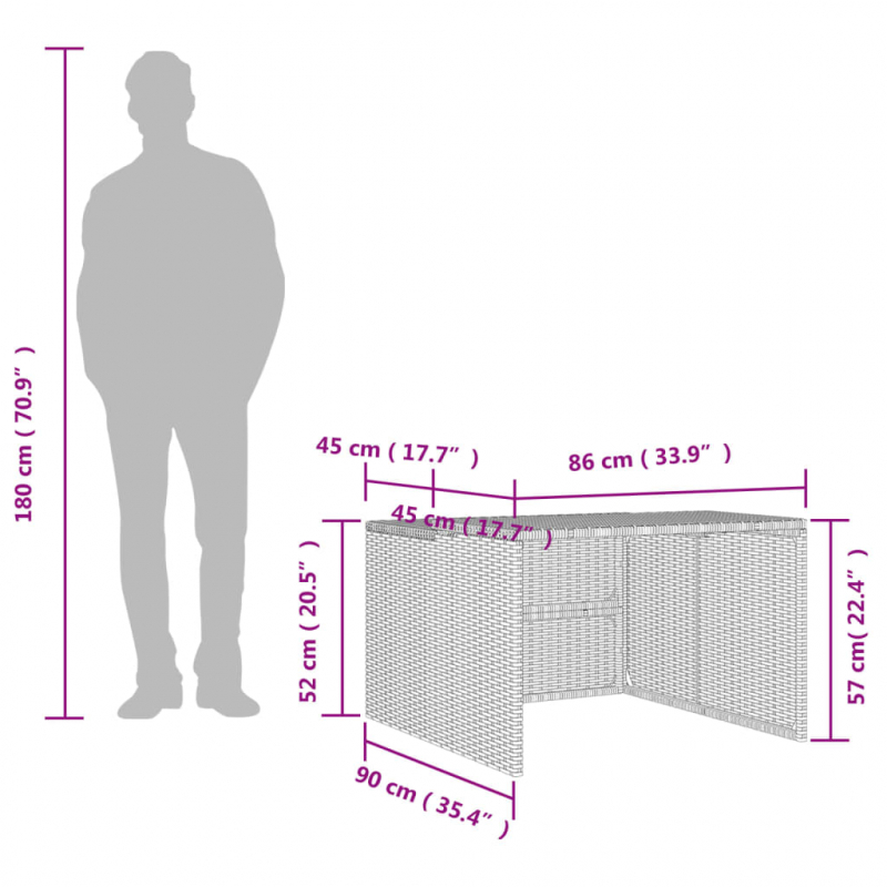 • Gesamtabmessungen: 86 x 90 x 52/57 cm (B x T x H)