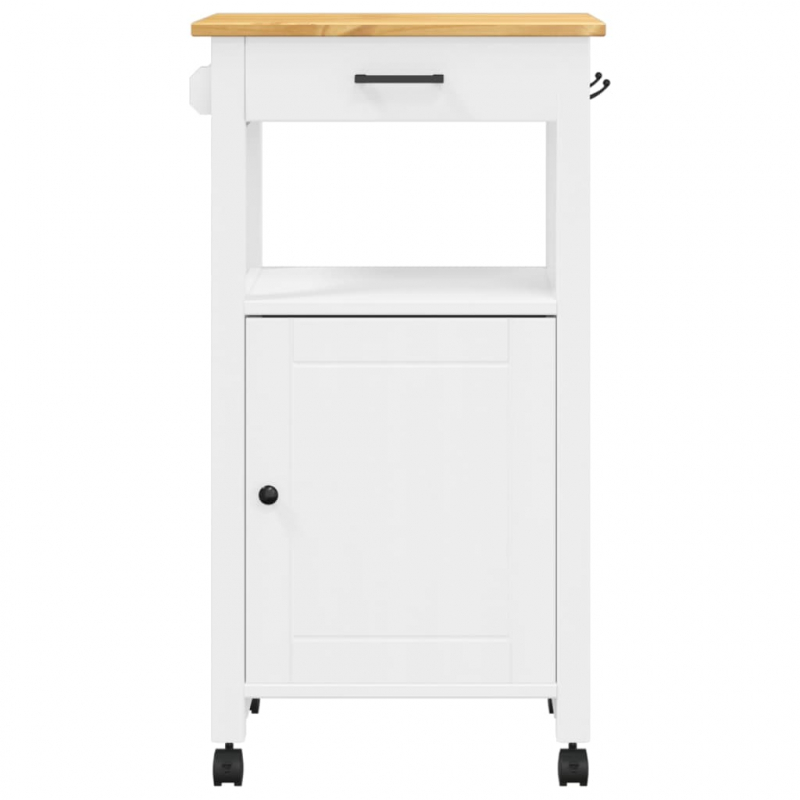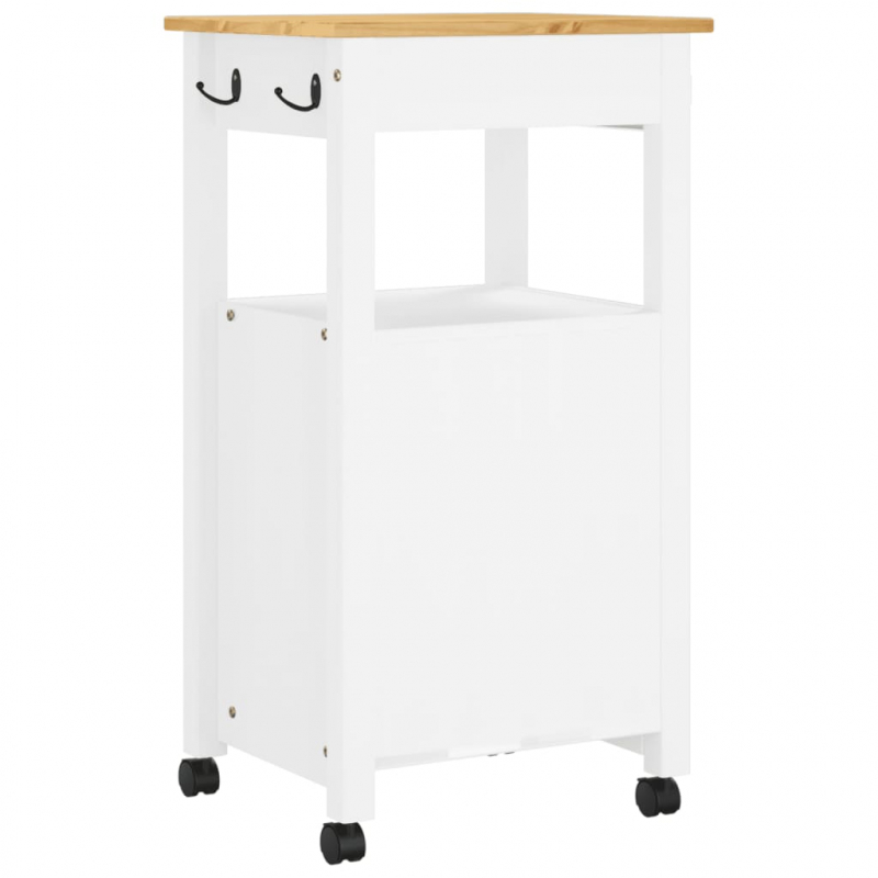 Dieser Küchenwagen aus Holz verleiht deiner Küche eine unverwechselbare Vintage-Note und schafft zusätzlichen Stauraum! Langlebiges Material: Kiefer-Massivholz ist ein wunderschönes Naturmaterial. Kiefernholz hat eine gerade Maserung und die Aststellen verleihen dem Material sein typisches, rustikales Aussehen. Aus Kiefer-Massivholz gefertigt, ist dieser Küchenwagen langlebig und robust. Viel Stauraum: Dieser Küchenwagen ist mit einer Schublade und einer Tür ausgestattet und bietet dadurch reichlich Stauraum für Küchenutensilien. Auf der seitlichen Holzstange und den Metallhaken kannst du verschiedene Sachen griffbereit aufbewahren. Leicht zu bewegen: Dieser Servierwagen verfügt über 4 Räder, davon sind 2 feststellbar, sodass er sich jederzeit flexibel bewegen lässt und stabil steht. Vielseitige Anwendungsmöglichkeiten: Der Rollwagen kann in der Küche, im Wohnzimmer, im Badezimmer, im Arbeitszimmer und an anderen Orten verwendet werden. Du kannst hier deine Alltagsgegenstände, Gewürze, Toilettenartikel, Bücher und andere Dinge aufbewahren, um dein Zuhause aufgeräumt zu halten.