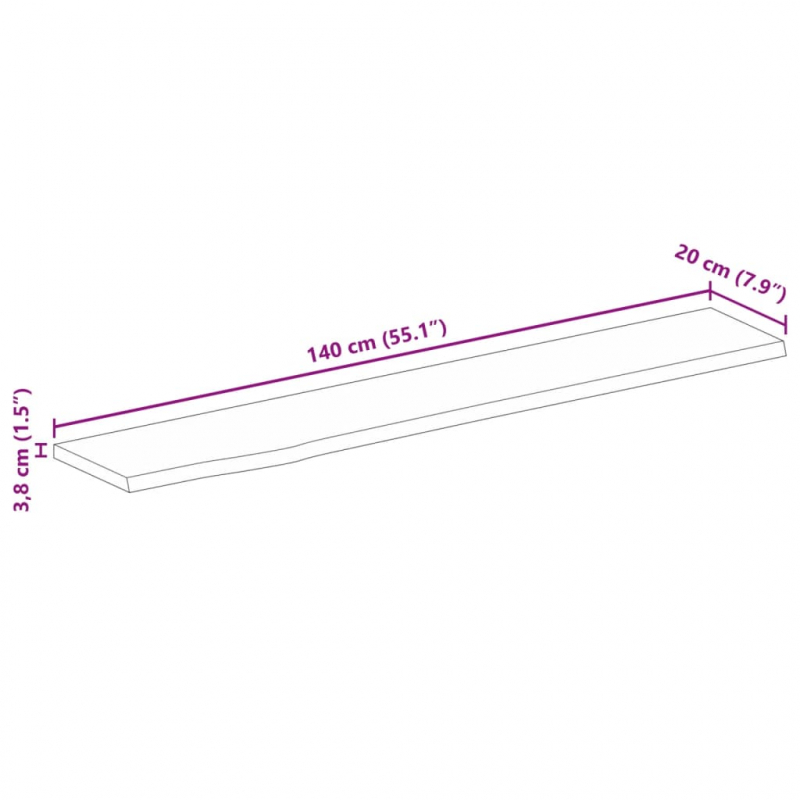 Tischplatte 140x20x3,8 cm Baumkante Massivholz Raues Mangoholz