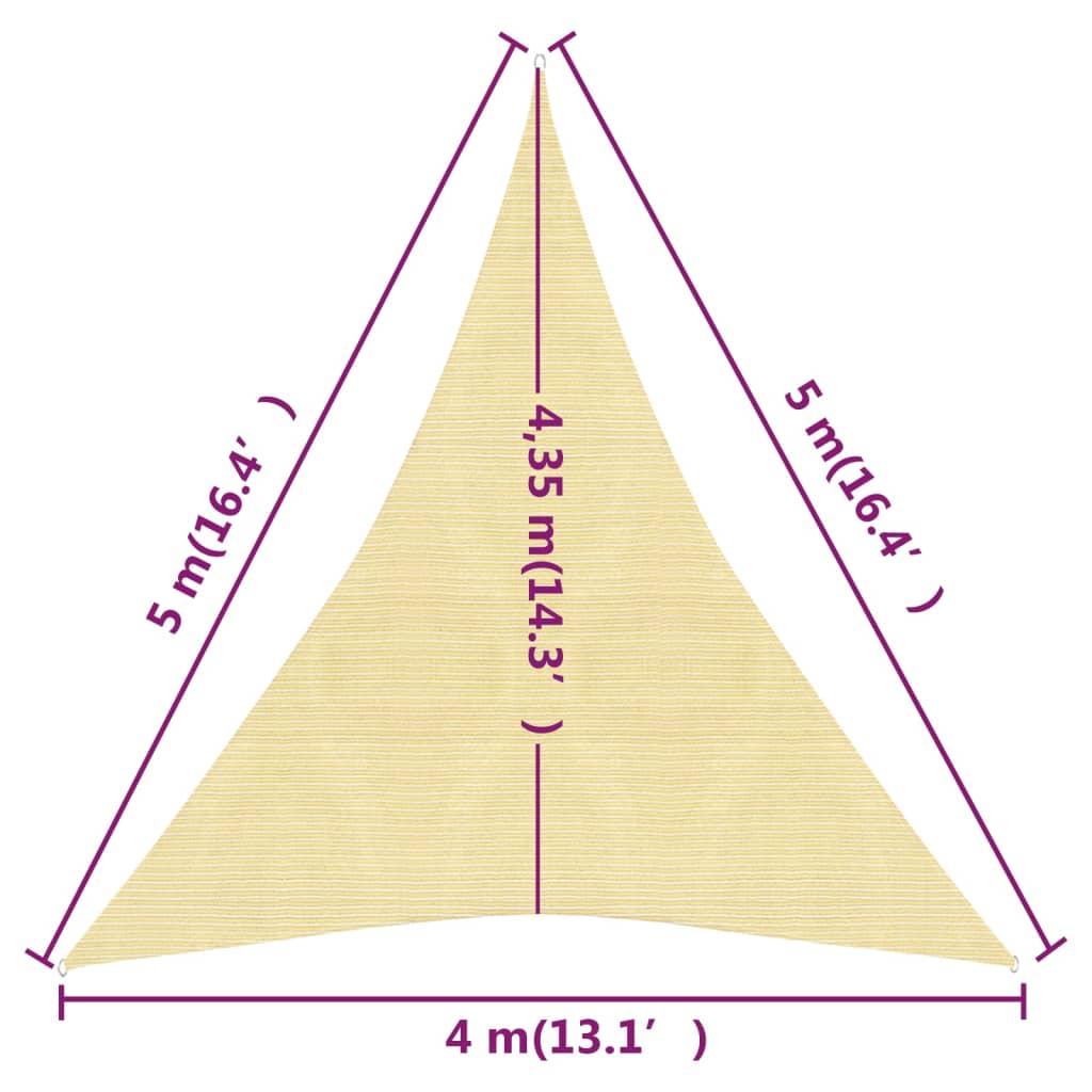 Schaffen Sie mit diesem HDPE-Sonnensegel einen kleinen Schutz vor der Sonne, wo immer Sie wollen. Es ist der ideale Sonnenschutz, der in allen Außenbereichen wie Garten, Terrasse, Spielplatz oder Balkon verwendet werden kann. Das Sonnensegel aus 100% HDPE (Polyethylen hoher Dichte) schützt Sie vor direkter Sonneneinstrahlung, lässt genügend Wind durch und ist wasserdurchlässig. Das HDPE ist speziell behandelt, daher ist es schimmel- und UV-beständig. Das Sonnensegel ist mit den Edelstahlverschlüssen (an jeder Ecke) und den mitgelieferten Seilen einfach anzubringen.