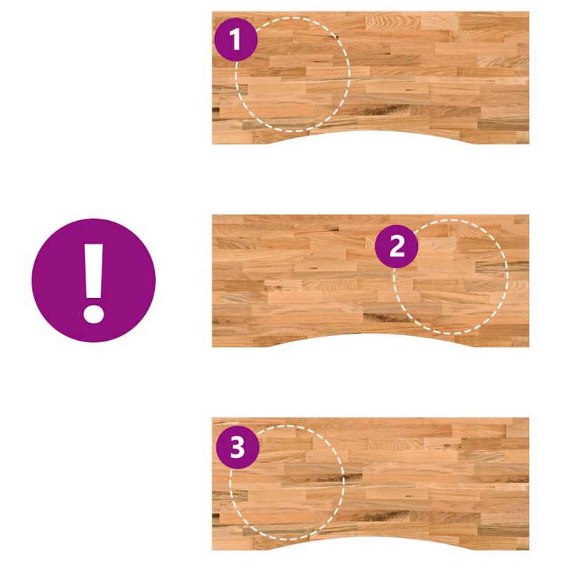 Diese Schreibtischplatte aus Holz eignet sich ideal, um deinen Tisch aufzupeppen und gleichzeitig eine natürliche Atmosphäre zu schaffen. Robustes und stabiles Material: Massives Eichenholz ist für seine Festigkeit, Haltbarkeit und schöne Maserung bekannt, weshalb es sich hervorragend für die Herstellung von langlebigen Möbeln eignet. Durch ihre natürliche Beständigkeit gegen Insektenbefall und Schimmelbildung sehen Eichenmöbel selbst nach jahrelangem Gebrauch brandneu aus.Vielseitig einsetzbar: Diese multifunktionale Tischplatte kann mit verschiedenen Untergestellen kombiniert werden, um einen kompletten Schreibtisch zu schaffen, der perfekt auf deine Bedürfnisse abgestimmt ist.Pflegeleicht: Dank ihrer glatten Oberfläche lässt sich die Arbeitsplatte mit einem feuchten Tuch leicht reinigen und erfordert wenig Pflege. Gut zu wissen:Jedes Stück ist ein Unikat, das in Farbe und Maserung variiert. Die Lieferung erfolgt in zufälliger Reihenfolge, wodurch die Exklusivität und Individualität deines Produkts gewährleistet wird.Wir empfehlen, einen Schraubendreher anstelle einer elektrischen Bohrmaschine zu verwenden, um Holzrisse beim Anbringen der Beine zu vermeiden.