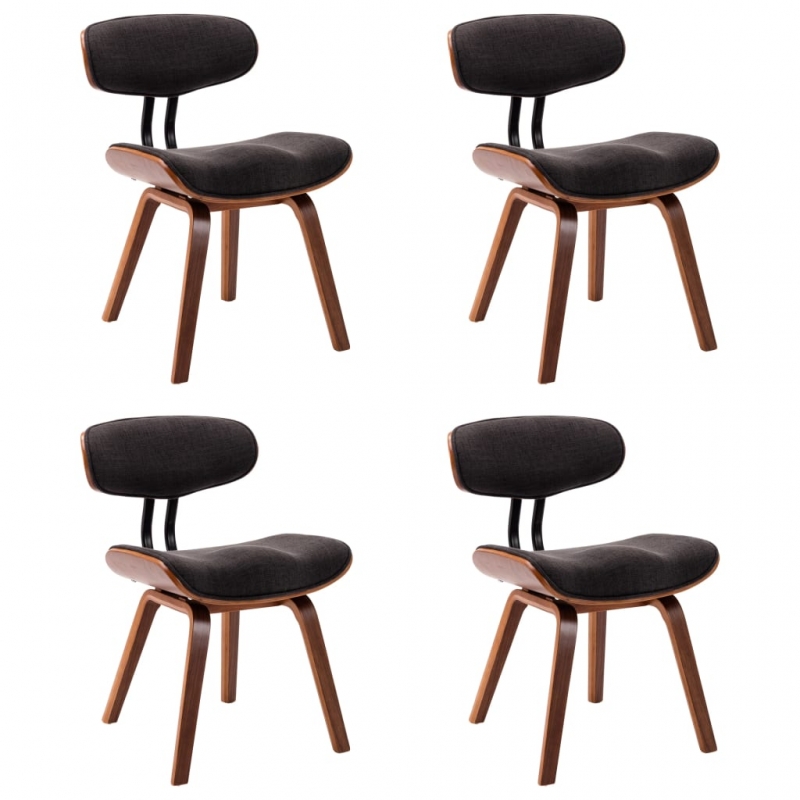 Mit diesem stilvollen Esszimmerstuhl-Set fügen Sie sofort einen echten Blickfang hinzu, um Ihr Esszimmer oder Ihre Küche zu dekorieren! Mit seinem gepflegten und schlichten Design bietet es Ihnen mit Sicherheit höchsten Sitzkomfort! Die Stühle sind weich gepolstert und mit Stoff bezigen, um optimalen Komfort zu bieten. Der robuste Rahmen aus gebogenem Holz verleiht ihm einzigartige Schönheit und Eleganz. Die 4 Holzbeine sorgen für hohe Robustheit und Stabilität. Das ergonomische Design macht die Esszimmerstühle außerdem sehr bequem. Die Lieferung umfasst 4 Stoff-Stühle.