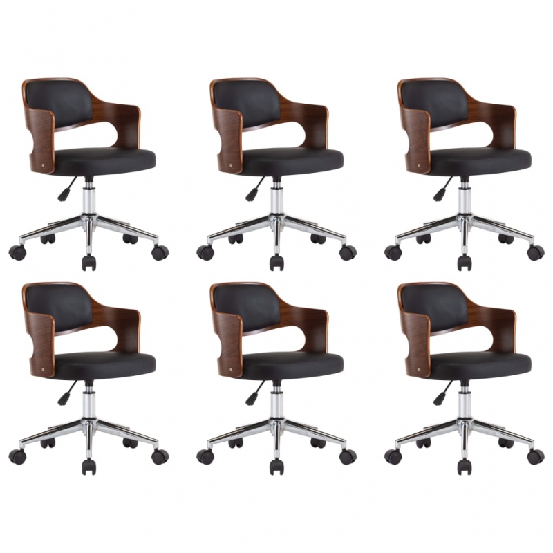 Mit seinem stilvollen, modernen Design verleiht dieses Set aus 6 Esszimmerstühlen jedem Wohnzimmer, Studentenzimmer, Lounge-Bereich oder Büro einen Hauch von Klasse. Sitzfläche und die Rückenlehne sind mit pflegeleichtem Kunstleder bezogen, was für optimalen Komfort sorgt. Das Holzgestell verleiht dem Beistellstuhl Stabilität. Die Rückenlehne und die Sitzfläche stützen deinen Rücken optimal und verringern den Druck auf der Wirbelsäule. Mit 5 Rollen versehen, lässt sich der Stuhl mühelos umher verschieben. Dank des Gasfedermechanismus lässt sich der Esszimmerstuhl in der Höhe verstellen. Diese Beistellstühle sind eine stilvolle Bereicherung für jedes Zuhause oder Büro. Diese Esszimmerstühle lassen sich zudem auch mühelos zusammenbauen.
