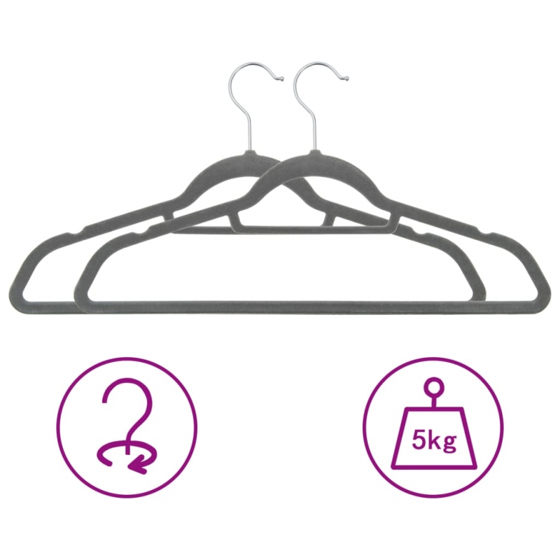 Dieser Satz Kleiderbügel besteht aus Kunststoff und Metall und hält ihn langlebig und robust genug, um dem Gewicht von schweren Stoffen standzuhalten. Die samtbeschichtete Oberfläche ist glatt und schützt Ihre Kleidung vor Kratzern. Der um 360 Grad drehbare Haken bietet Flexibilität, um Ihre Kleidung an verschiedenen Orten zu organisieren. Außerdem verhindern 2 Kerben an zwei Seiten, dass die Kleidung oder Bekleidungsaccessoires abrutschen. Darüber hinaus vermeidet die zylindrische Designleiste Falten und bietet weitere Aufhängeoptionen für Hosen, Bettlaken und Decken usw.