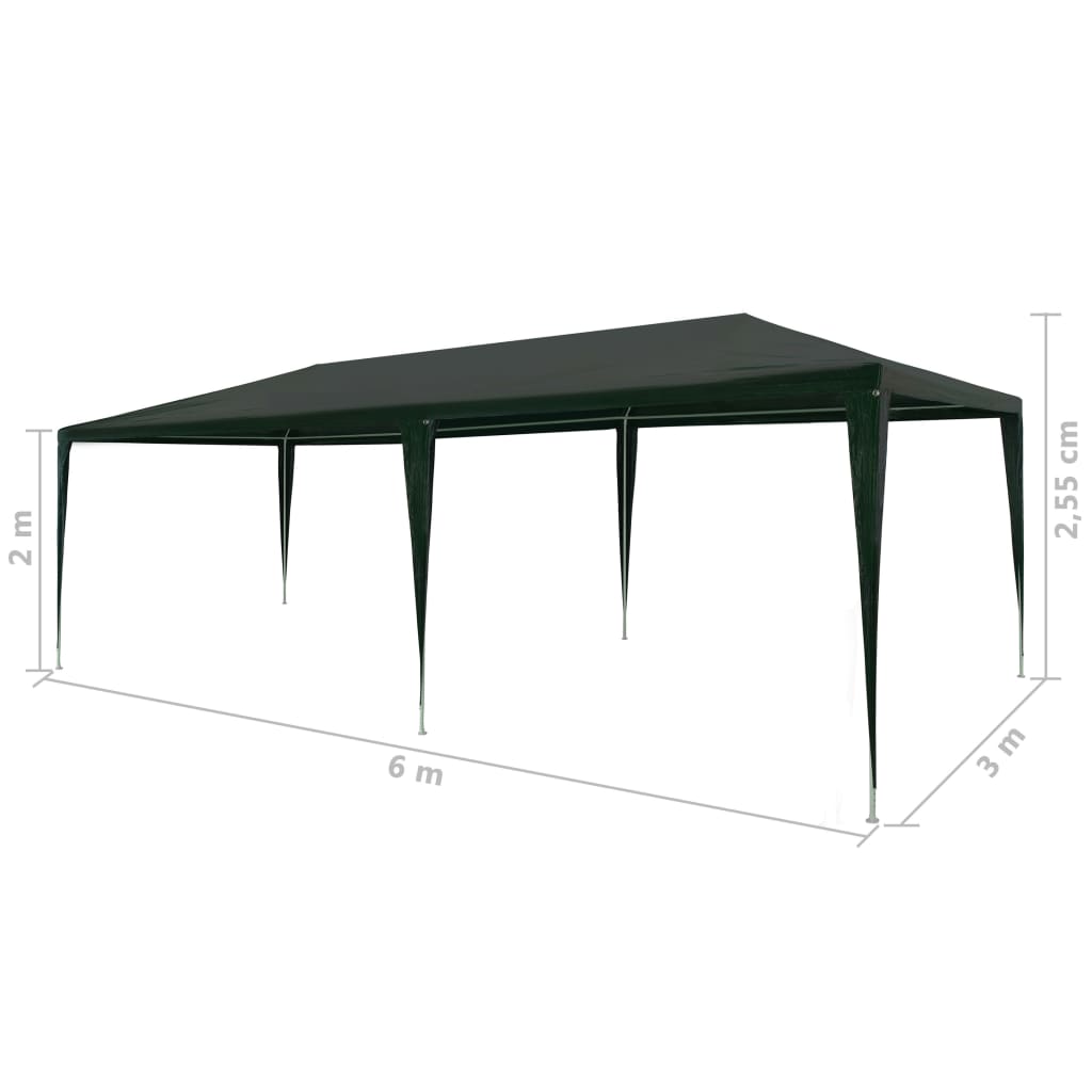 Dieses Partyzelt bietet einen wunderbaren Ort, um deine Familie und Freunde bei allen Arten von Festen und Feiern im Outdoor-Bereich zu empfangen und zu bewirten. Der Pavillon ist aus UV- und wasserbeständigem Polyethylen gefertigt und daher für den Außenbereich bestens geeignet. Der Rahmen ist aus rostbeständigem Stahl gefertigt, was das Gartenzelt stabil und langlebig macht. Dieser Pavillon ist einfach zu montieren. HINWEIS: Damit deine Gartenmöbel lange in bester Form bleiben, empfehlen wir dir, sie mit einer wasserdichten Abdeckung zu schützen. Dieses Produkt sollte NIEMALS bei schlechtem Wetter wie starkem Wind, starkem Regen, Schnee, Sturm usw. verwendet werden.