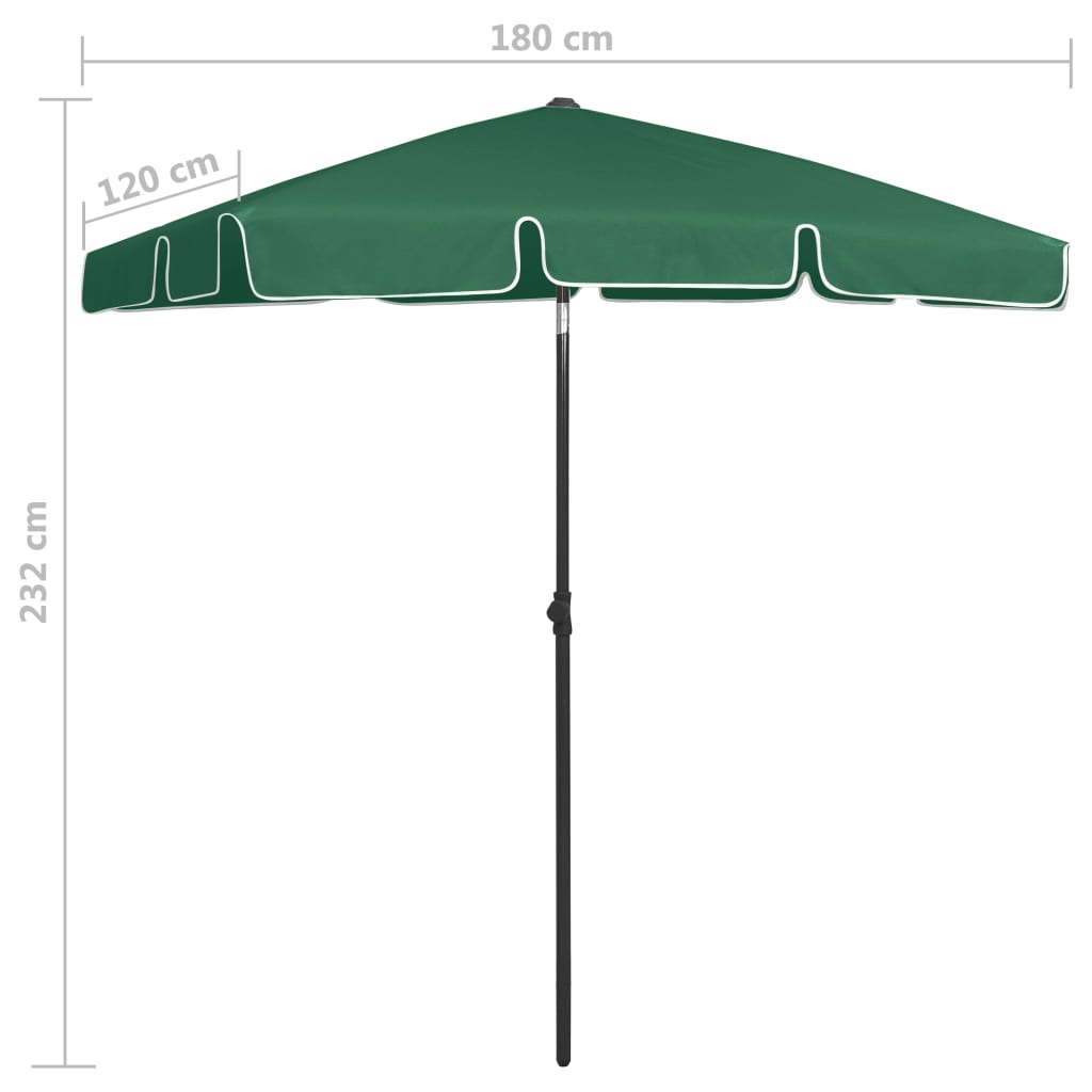 Der Strandschirm besteht aus UV-beständigem und farbechtem Polyester, das Schutz vor den schädlichen UV-Strahlen der Sonne bietet. Die Schirmrippen bieten ausreichend Halt für die Bespannung. Dieser Sonnenschirm kann auf einem vorhandenen Ständer oder in der Mitte von Tischen montiert werden, sofern ein Loch vorhanden ist. Der Strandschirm lässt sich dank Kippmechanismus in jede Richtung neigen und bietet so optimalen Schutz vor der Sonne.