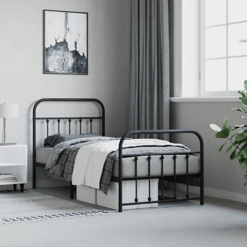 Bettgestell mit Kopf- und Fußteil Metall Schwarz 90x200 cm