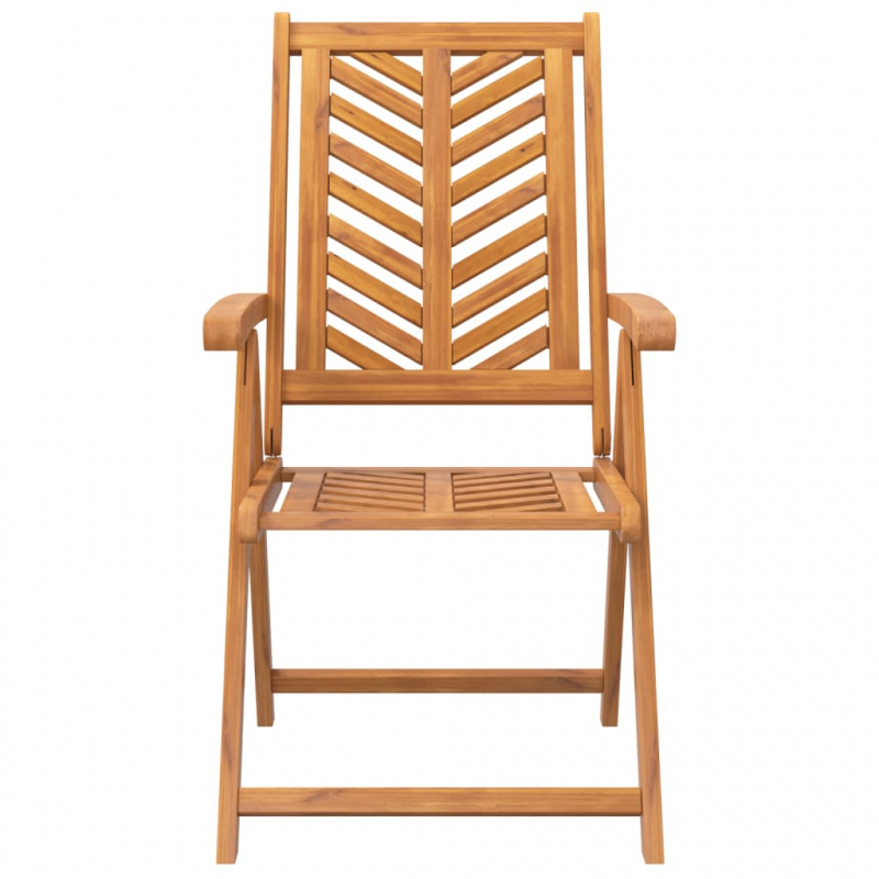 Diese verstellbaren Gartenstühle mit Fischgräten-Design sind die perfekte Ergänzung für deinen Garten und deine Terrasse und hinterlassen einen bleibenden Eindruck! Massives Akazienholz: Akazien-Massivholz ist ein schönes Naturmaterial. Akazienholz ist ein tropisches Hartholz, das dicht, robust und langlebig ist.Stabiler Rahmen: Der Holzrahmen des Relaxstuhls sorgt für Robustheit und Stabilität.5 Liegepositionen: Die Gartenstühle sind speziell mit 5 Liegepositionen ausgestattet, sodass du die Rückenlehne nach Belieben einstellen kannst.Bequemes Sitzerlebnis: Der Holz-Gartenstuhl ist mit Armlehnen und einer Rückenlehne im Chevron-Muster versehen, um höchsten Sitzkomfort zu bieten.Elegantes Design: Die Gartenstühle ziehen mit ihrem unverwechselbaren Latten-Design die Aufmerksamkeit aller auf sich. Hinweis:Damit deine Gartenmöbel lange schön bleiben, empfehlen wir dir, sie mit einer wasserdichten Hülle zu schützen.