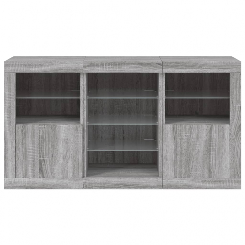 Dekoriere dein Zuhause mit diesem modernen Sideboard mit LED-Beleuchtung, das sich leicht mit Möbeln in jedem Stil kombinieren lässt. Langlebiges Material: Der Holzwerkstoff ist von außergewöhnlicher Qualität mit glatter Oberfläche und zeichnet sich außerdem durch Festigkeit, Stabilität und Widerstandsfähigkeit gegen Feuchtigkeit aus.RGB-LED-Lichter: Das Buffet ist mit leuchtenden RGB-LED-Leuchten ausgestattet. Mit verschiedenen anpassbaren Menüs kannst du die Farbe der Lichter mühelos ändern und sie sogar so einstellen, dass sie sich automatisch anpassen. Diese LED-Leuchten unterstreichen nicht nur den modernen Look des Sideboards, sondern tragen auch zu seiner trendigen Ausstrahlung bei.Ausreichend Stauraum: Der Aufbewahrungsschrank bietet viel Platz, um deine alltäglichen Dinge übersichtlich und leicht zugänglich aufzubewahren.Präsentationsfunktion: Die robuste Oberseite des Flurschranks eignet sich ideal zum Ausstellen von Dekorationsgegenständen, Bilderrahmen oder Topfpflanzen.Praktische Türen: Verstecke deine Utensilien hinter den Türen des Seitenschranks, um sie vor Staub zu schützen. Gut zu wissen:Das Produkt verfügt über einen USB-Anschluss, für den eine zertifizierte 5V-USB-Stromquelle erforderlich ist (nicht im Lieferumfang enthalten). Achtung:Um ein Umkippen zu vermeiden, sollte dieses Produkt mit der mitgelieferten Wandhalterung gesichert werden.