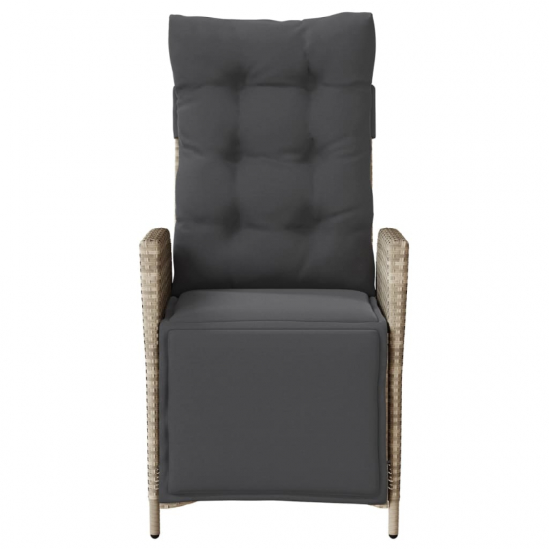 Gartensessel mit Fußteil 2Stk. Verstellbar Hellgrau Poly Rattan