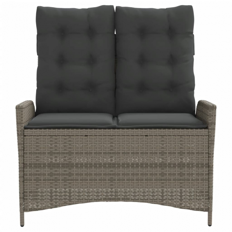 Gartenbank Verstellbar mit Kissen Grau Poly Rattan