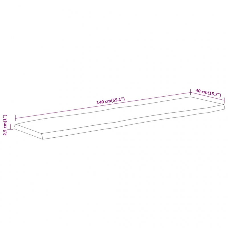 Verleihe deinem Tisch neues Leben mit dieser Holztischplatte. Sie ist eine hervorragende Lösung für die Auffrischung deines Tisches zu Hause oder in einem gewerblichen Umfeld. Massives Akazienholz: Akazien-Massivholz ist ein schönes Naturmaterial. Akazienholz ist ein tropisches Hartholz, das dicht, robust und langlebig ist.Vielseitig einsetzbar: Diese Holztischplatte eignet sich für Bartische, Beistelltische oder sogar eigene Möbelprojekte. Du kannst diese Ersatztischplatte mit beliebig geformten Beinen kombinieren.Naturkante: Die Möbelplatte aus Holz weist eine rustikale Naturkante auf. Dabei sind Aststellen, Risse, leicht geschwungene Formen und verschiedene Farbtöne Teil davon und machen jedes Möbelstück zu einem Unikat.Einfache Reinigung: Die glatte Tischplatte lässt sich mit einem feuchten Tuch leicht reinigen. Gut zu wissen:Jedes Stück ist ein Unikat, das in Farbe und Maserung variiert. Die Lieferung erfolgt in zufälliger Reihenfolge, wodurch die Exklusivität und Individualität deines Produkts gewährleistet wird.