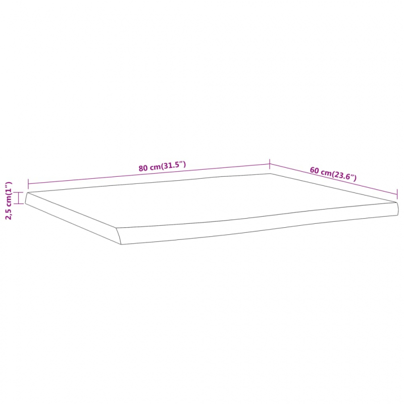Tischplatte 80x60x2,5cm Rechteckig Massivholz Akazie Naturkante