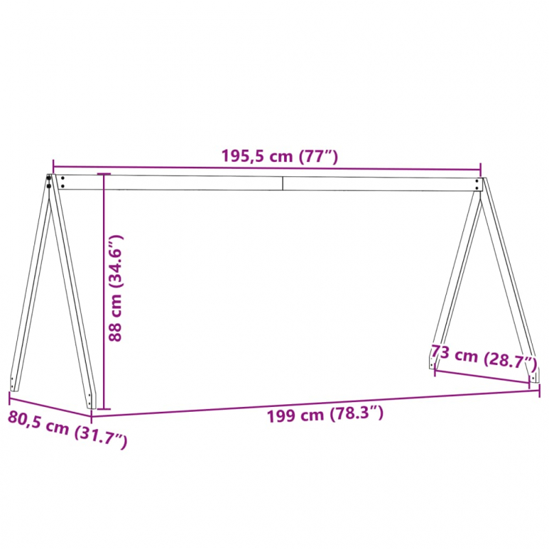 • Abmessungen: 199 x 80,5 x 88 cm (L x B x H)