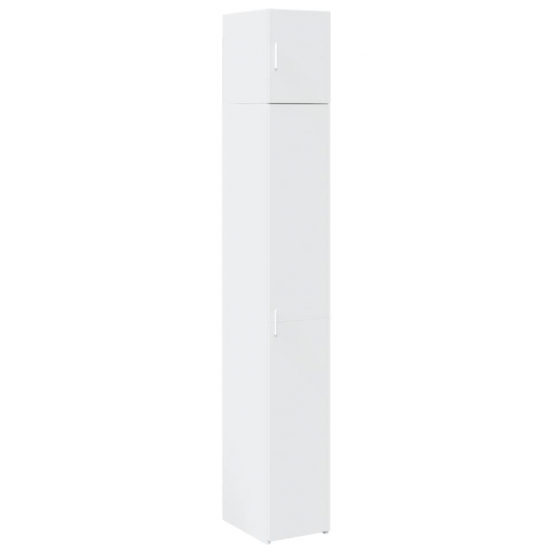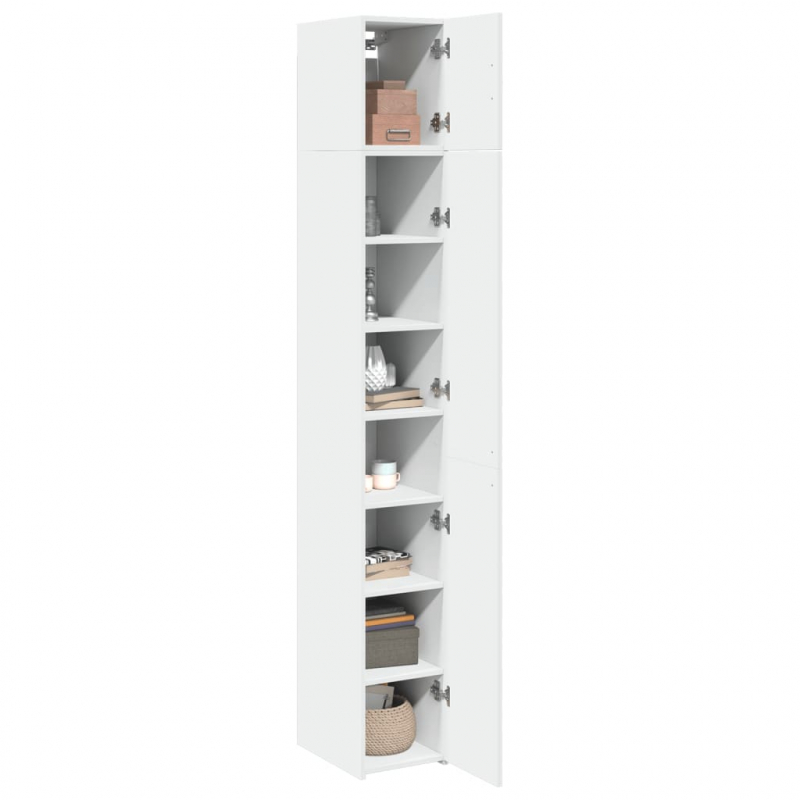 Dieser schmale Hochschrank verfügt über zwei Fächer unterschiedlicher Größe und bietet zusätzlichen Stauraum in deinem Zuhause. Starkes und langlebiges Material: Holzwerkstoff ist ein langlebiges und robustes Material mit einer glatten Oberfläche, das gegen Feuchtigkeit, Verformung und Rissbildung beständig ist, wodurch es eine zuverlässigen Wahl für die Herstellung von Möbeln ist.Viel Stauraum: Dieser Seitenschrank ist mit mehreren Fächern ausgestattet und bietet reichlich Stauraum für Handtücher, Toilettenartikel, Bücher, Sammlerstücke, Dekoartikel oder andere Gegenstände, die du sauber aufbewahren möchtest.Zwei Arten der Türmontage: Du kannst die Tür je nach Wunsch auf der rechten oder linken Seite montieren.Platzsparend: Dieser Hochschrank nutzt den vertikalen Raum effizient aus und ist somit ein ideales Möbelstück für kleinere Räume mit begrenztem Platzangebot.Breite Anwendung: Dieser vielseitige Aufbewahrungsschrank ist eine praktische Ergänzung für verschiedene Räume, einschließlich Badezimmer, Wohnzimmer, Schlafzimmer, Küche, Waschküche, Büro, Arbeitszimmer und Garage. Achtung:Um ein Umkippen zu vermeiden, sollte dieses Produkt mit der mitgelieferten Wandhalterung gesichert werden. Gut zu wissen:Schrauben und Dübel für die Montage an der Wand sind nicht enthalten. Passendes Montagezubehör muss separat gekauft werden. Wenn du dir bezüglich der Montage nicht sicher bist, wende dich bitte an einen Fachmann. Bitte lies und befolge jeden Schritt in der Anleitung.