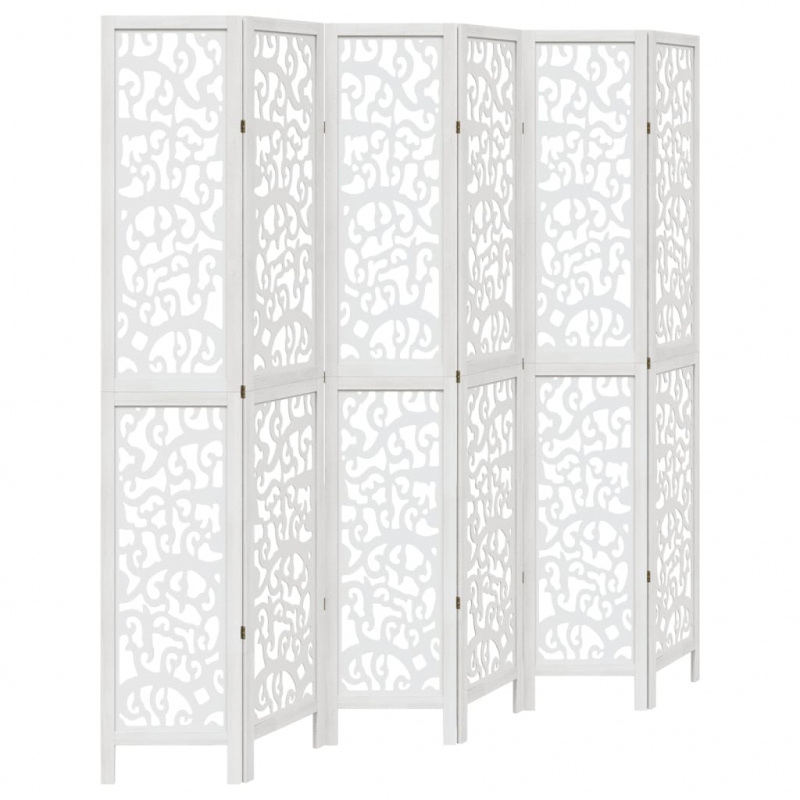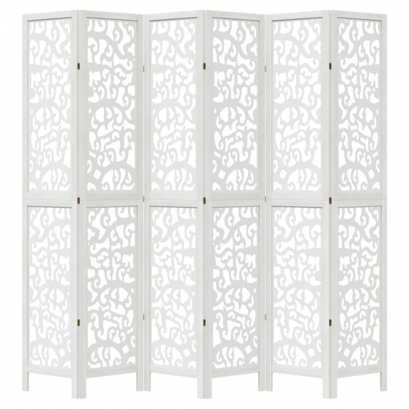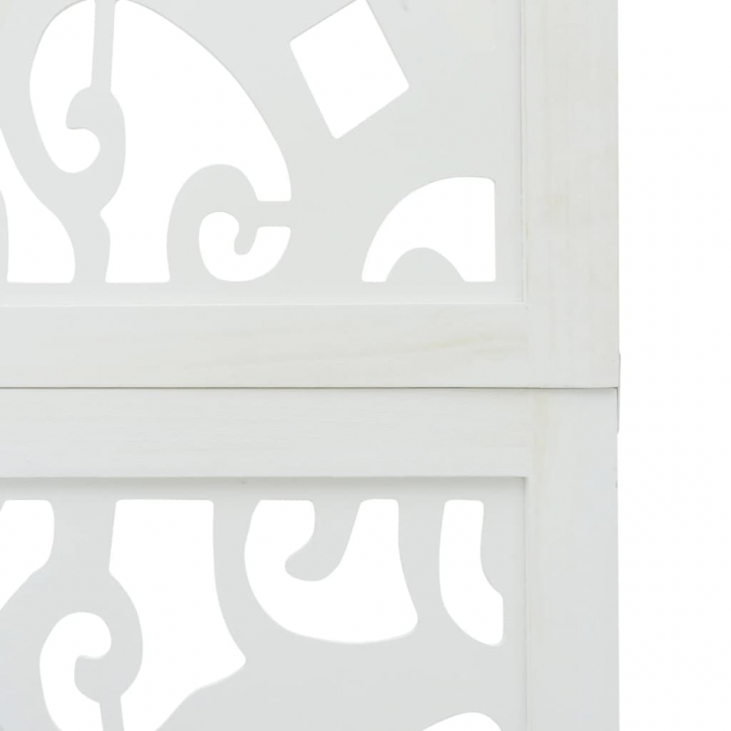 Verleihe deinem Wohnraum eine auffällige dekorative Note mit diesem bezaubernden Raumteiler. Langlebig und leicht zu reinigen: Der Sichtschutz ist aus Paulownia-Massivholz und Holzwerkstoff gefertigt, wodurch er pflegeleicht und strapazierfähig ist.Robuster Rahmen: Der Rahmen aus massivem Paulownia-Holz sorgt für Robustheit und Stabilität. Paulownia-Massivholz ist ein wunderschönes Naturmaterial. Paulowniaholz ist widerstandsfähig gegen Schädlingsbefall und Verrottung.Flexibel und einfach faltbar: Die Paravent-Teile sind jeweils durch 3 Metallscharniere miteinander verbunden. Die oberen und unteren Paneele dieser spanischen Wand sind durch verborgene 2-in-1-Scharniere verbunden. Der Raumtrenner kann also leicht bis zu einem gewissen Grad zusammengeklappt werden; dadurch spart er bei Nichtgebrauch Platz.Vielseitig einsetzbar: Die Trennwand eignet sich hervorragend zur Schaffung von Privatsphäre im Schlafzimmer, Wohnzimmer, Büro und anderen Räumen. Du kannst das Paravent auch vor ein Fenster stellen, um intensives Sonnenlicht abzuschirmen.Attraktiver Look: Mit seinem filigranen Muster verleiht diese faltbare Trennwand jedem Raum mehr Charakter. Achtung:Nur für den Innenbereich!