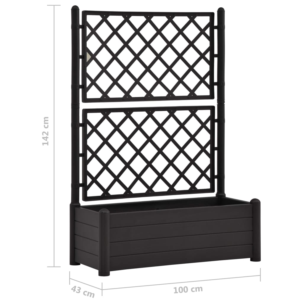 Stellen Sie Ihre Lieblingsblume oder -pflanzen schön zur Schau mit diesem Garten-Pflanzgefäß mit Spalier! Das Hochbeet aus wetterbeständigem PP ist leicht und für den Außenbereich geeignet. Es hat einen großen Blumenkasten mit einem Fassungsvermögen von 90 L für eine beträchtliche Anzahl grüner Pflanzen und Blumen. Das integrierte Spalier bietet eine großartige Stütze für Kletterpflanzen und sorgt außerdem für einen beeindruckenden und dekorativen Effekt, wenn es mit schönen Kletterpflanzen bewachsen ist.