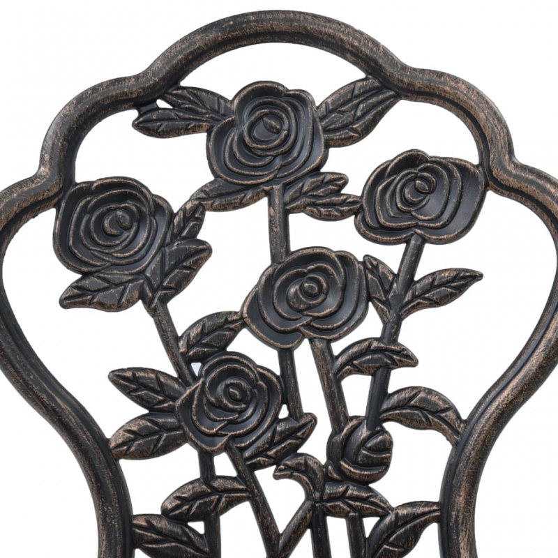 Diese Bistrostühle werden mit ihren dekorativen, blumigen Details eine großartige Ergänzung für Ihre Terrasse oder Ihren Garten sein. Es wird Ihnen Spaß bereiten, Ihren Freunden auf diesen Stühlen eine Tasse Kaffee zu servieren. Das Bistro-Set besteht aus Aluminiumguss, der wetterfest und sehr langlebig ist. Die gusseisernen Beine tragen zur Stabilität des Sets bei. Das detailreiche Blumenmuster verleiht jedem (Winter-)Garten und jeder Terrasse eine romantische Note. Die Lieferung umfasst 2 Bistrostühle.