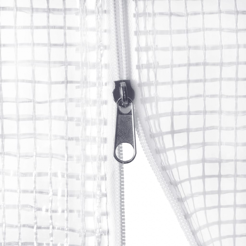 Dieses geräumige Gewächshaus kann eine beträchtliche Anzahl von Obst, Gemüse und Pflanzen aufnehmen. Es ist ideal, um deine Pflanzen vor widrigen Wetterbedingungen zu schützen. Langlebige PE-Abdeckung: Polyethylen (PE) ist der am häufigsten verwendete Kunststoff. Es ist UV-beständig, witterungsbeständig, reißfest, leichtgewichtig und pflegeleicht. Außerdem schützt es deine Pflanzen vor Schäden durch Vögel und bietet gleichzeitig Schutz vor Kälte.Stabiler Rahmen: Stahl ist ein außergewöhnlich hartes und starkes Material. Er bietet Robustheit und Stabilität. Die Verzinkung bietet einen besseren Schutz gegen Korrosion und eignet sich für Produkte, die im Freien und in rauen Bedingungen verwendet werden.Praktisches Design: Das Pflanzenhaus ist so konzipiert, dass es leicht zugänglich ist und die Luftzirkulation dank der aufrollbaren Tür mit Reißverschluss und der 4 seitlichen aufrollbaren Netzfenster optimiert wird. Gut zu wissen:Wir empfehlen, das Fundament für zusätzliche Stabilität hinzuzufügen. Das Dach des Gewächshauses kann starkem Schneefall nicht standhalten.