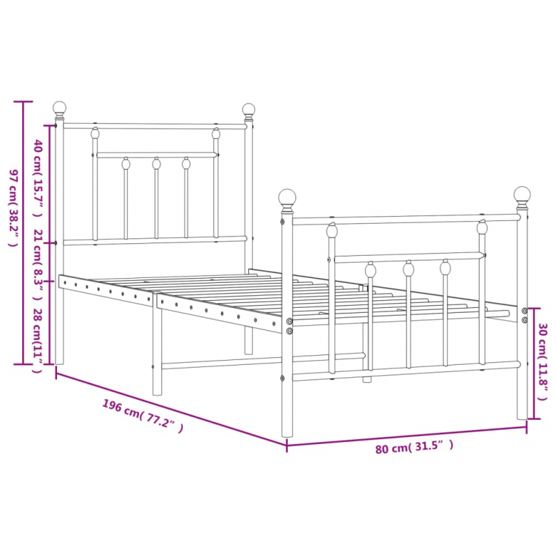 Bettgestell mit Kopf- und Fußteil Metall Schwarz 75x190 cm