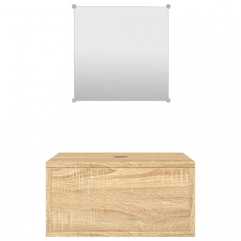 Dieses trendige Badmöbel-Set ist eine hervorragende Ergänzung zu deinem Badezimmer und verleiht ihm ein aufgeräumtes und markantes Aussehen! Langlebiges Material: Holzwerkstoff ist ein Material von außergewöhnlicher Qualität mit glatter Oberfläche, das sich durch Festigkeit, Stabilität und Feuchtigkeitsbeständigkeit auszeichnet. Wandmontage: Der Schrank nimmt keine Bodenfläche ein. Du kannst ihn einfach an der Wand montieren. Praktischer Spiegel: Verwende den mitgelieferten Spiegel für deine tägliche Gesichtspflege. Er sieht auch großartig in deiner Inneneinrichtung aus. Gut zu wissen:Das Waschbecken ist nicht im Lieferumfang enthalten.Der Ablauf ist im Lieferumfang enthalten.Schrauben und Dübel sind für die Befestigung an der Wand nicht im Lieferumfang enthalten. Wir empfehlen, speziell für deine Wände geeignete Schrauben und Dübel zu finden und zu verwenden. Im Zweifelsfall wende dich an einen Fachmann. Bitte lese und befolge jeden Schritt der Anweisungen.