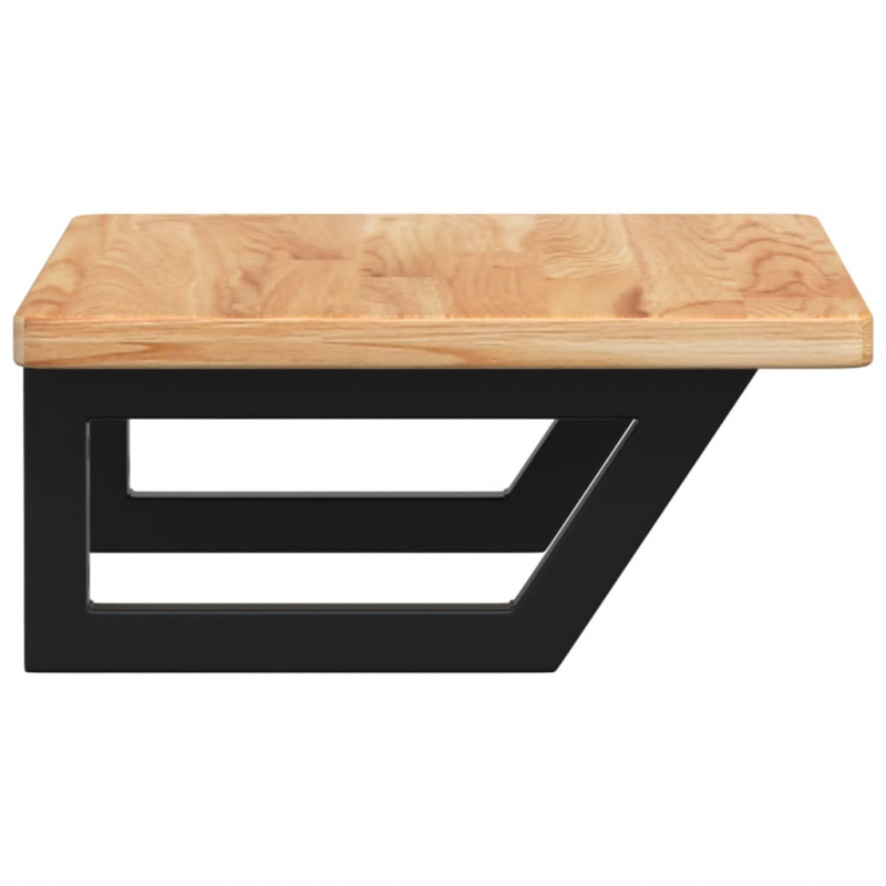 Die Waschtischplatte wird sicher an der Wand befestigt und bietet eine elegante und platzsparende Lösung für dein Badezimmer. Robust und langlebig: Diese Waschtisch-Platte hat Stahlhalterungen und eine Eichenholz-Platte, wodurch sie robust, stabil und langlebig ist. Platzsparend: Die schwebende Waschtischplatte bietet reichlich Platz für das Waschbecken, Seifen, Cremes sowie andere Kleinigkeiten. Dank der Trapezform kannst du Handtücher oder andere Dinge platzsparend an der Halterung aufhängen. Einfache Verwendung: Die Holzplatte ist nicht vorgebohrt, so dass dein Waschbecken je nach Bedarf links, rechts oder mittig installiert werden kann. Dank der vorgebohrten Löcher in der Halterung kann diese einfach mit der Tischplatte montiert und an der Wand befestigt werden. Vielseitige Anwendungsmöglichkeiten: Dank ihres modernen Designs fügt sie sich in verschiedene Arten von Bädern ein. Gut zu wissen:Die Schrauben sind nicht im Lieferumfang enthalten. Du kannst die Schrauben auf der Grundlage der unten aufgeführten Informationen separat erwerben. Wandbefestigung: 2 Stück M8-Dehnschrauben pro Halterung Holzplatte: 2 Stück M5x18-Schrauben (T=2) oder 2 Stück M5x20-Schrauben (T=2,5/4 cm) pro Halterung