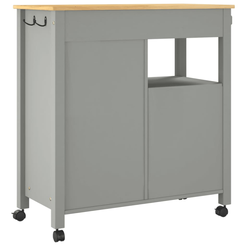 Dieser Küchenwagen aus Holz verleiht deiner Küche eine unverwechselbare Vintage-Note und schafft zusätzlichen Stauraum! Langlebiges Material: Kiefer-Massivholz ist ein wunderschönes Naturmaterial. Kiefernholz hat eine gerade Maserung und die Aststellen verleihen dem Material sein typisches, rustikales Aussehen. Aus Kiefer-Massivholz gefertigt, ist dieser Küchenwagen langlebig und robust. Viel Stauraum: Dieser Küchenwagen ist mit einer Tür und 4 Schubladen ausgestattet, die reichlich Stauraum für Küchenutensilien bieten. Auf der seitlichen Holzstange und den Metallhaken kannst du verschiedene Sachen griffbereit aufbewahren. Leicht zu bewegen: Dieser Servierwagen verfügt über 4 Räder, davon sind 2 feststellbar, sodass er sich jederzeit flexibel bewegen lässt und stabil steht. Vielseitige Anwendungsmöglichkeiten: Der Rollwagen kann in der Küche, im Wohnzimmer, im Badezimmer, im Arbeitszimmer und an anderen Orten verwendet werden. Du kannst hier deine Alltagsgegenstände, Gewürze, Toilettenartikel, Bücher und andere Dinge aufbewahren, um dein Zuhause aufgeräumt zu halten.