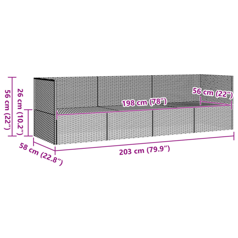 Dieses bequeme Outdoor-Loungebett mit Kissen ist eine perfekte Kombination aus Stil und Funktionalität. Haltbares Material: Poly Rattan ist ein langlebiges Material mit ausgezeichneter Festigkeit, das unterschiedlichen Wetterbedingungen standhält. Es erfordert auch nur wenig Pflege.Robust: Die pulverbeschichtete Stahlrahmen sorgen für Robustheit und Stabilität.Flexibles Design: Beide Seiten der Sonnenliege lassen sich nach oben und unter verstellen, um eine bequemere Sitz- oder Liegeposition zu bieten.Bequemes Sitzerlebnis: Für deinen Komfort sind zusätzliche Kissen im Lieferumfang enthalten. Hinweis:Um die Lebensdauer deiner Gartenmöbel zu verlängern, empfehlen wir dir, sie mit einer wasserdichten Hülle zu schützen.Jedes Produkt wird mit einer Montageanleitung in der Verpackung für einen einfachen Zusammenbau geliefert.