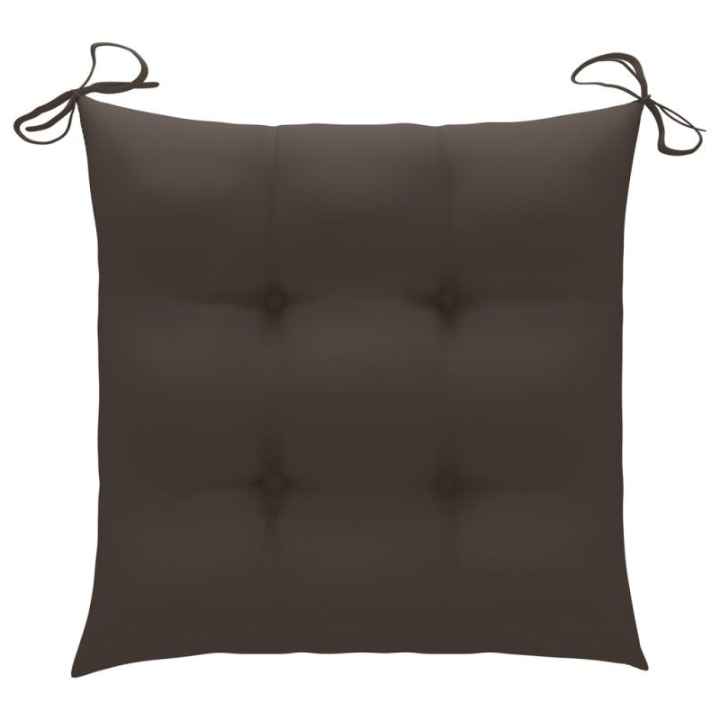 Dieses Gartenstuhl-Set aus Holz zeichnet sich durch ein zeitloses Design aus. Dank ihres schlichten und zugleich stilvollen Designs passen die Gartenstühle zu jeder Einrichtung, sei es Wohnungen, Büros, Bars oder Cafés. Das für dieses Möbelset verwendete Teakholz ist technisch getrocknet und anschließend fein geschliffen worden, um ein sehr glattes Erscheinungsbild zu eralten. Teakholz ist für seine außergewöhnliche Festigkeit und Witterungsbeständigkeit geschätzt und eignet sich daher besser für Gartenmöbel als jede andere Holzart. Teakholz ist die perfekte Wahl, wenn Sie ein langlebiges Gartenmöbel erwerben möchten. Dank der geschliffenen Oberfläche sind die Essstühle witterungsbeständig und leicht zu reinigen. Sie können auch zusammengeklappt werden, um bei Nichtgebrauch Stauraum zu sparen. Darüber hinaus sorgen die mitgelieferten Kissen für zusätzlichen Komfort. Jedes Kissen ist mit je 2 Bändern an zwei Ecken zur festen Befestigung am Stuhl versehen. Hinweis: Um die Lebensdauer Ihrer Gartenmöbel zu verlängern, empfehlen wir Ihnen, diese regelmäßig zu reinigen und bei Nichtgebrauch im Freien abzudecken.Reinigung: Verwenden Sie eine milde SeifenlösungLagerung: Wenn möglich, an einem kühlen, trockenen Ort im Innenbereich lagern. Wenn das Produkt im Freien gelagert wird, schützen Sie es mit einer wasserdichten Abdeckung. Wischen und trocknen Sie das überschüssige Wasser oder den Schnee nach Regen oder Schneefall von der ebenen Fläche. Sorgen Sie für eine ausreichende Luftzirkulation, um feuchtigkeitsbedingte Schäden zu vermeiden.