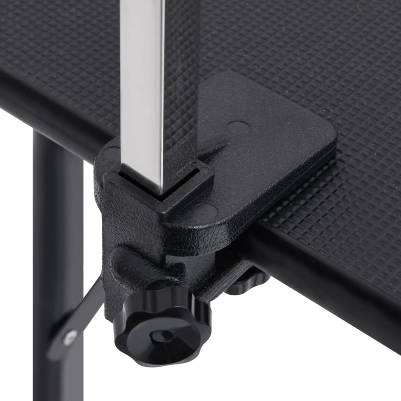 Der Hunde-Schertisch ist eine gute Wahl, um Ihren schönen Haustieren den größtmöglichen Komfort beim Pflegen zu bieten. Dieser Haustier-Pflegetisch wird von Stahlbeinen getragen, wodurch er stabil und robust steht. Die große rutschfeste Tischplatte schafft eine bequeme Oberfläche, auf der Ihre Haustiere bequem und sicher stehen können. Zusätzlich ist der Galgen aus Edelstahl höhenverstellbar. So können Sie eine perfekte Höhe einstellen, die zu Ihnen und der Größe Ihres Haustieres passt. Der Tisch ist klappbar und ideal für mobile Hundefriseure und den Heimgebrauch, da er leicht zu verstauen ist. Unter der Tischplatte befindet sich ein Korb, in dem die täglichen Gegenstände für Haustiere aufbewahrt werden können. Darüber hinaus verhindern die runden Ecken Verletzungen.