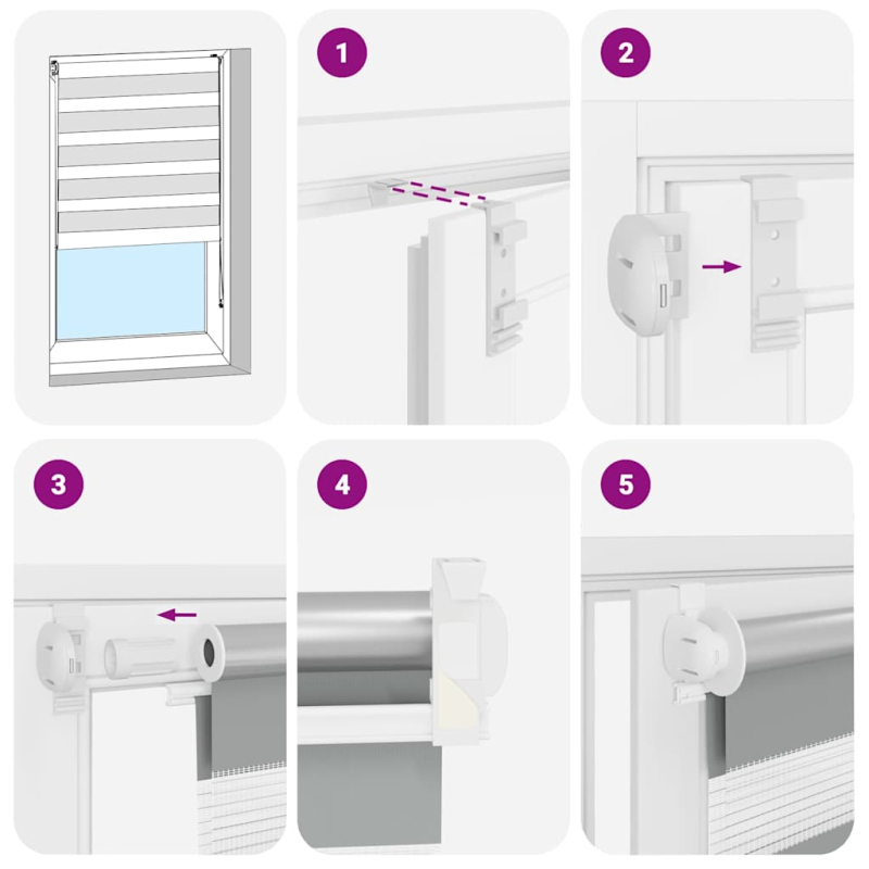 Den neusten Trend in Sachen Licht- und Sichtschutz bietet Ihnen dieses hochwertig verarbeitete Doppelrollo. Durch die 2 parallel verlaufenden Stoffbahnen mit abwechselnd gewebten, transparenten und blickdichten Streifen können Sie mit Hilfe des Kettenzuges das einfallende Licht ganz individuell dosieren. Dabei entstehen wundervolle Lichtspiele.Bitte wählen Sie aus 11 unterschiedlichen Größen.Einfache Bedienung durch Seitenzugkette, das Rollo kann in jeder Höhe gestoppt werden, dies ermöglicht eine komplette oder auf Wunsch nur teilweise Verdunklung des jeweiligen Raumes.Die Klemmhalter werden einfach auf die Innenkante des oberen Fenster-flügels gesetzt. Jegliches Bohren entfällt.Bitte beachten Sie, dass hier angegebene Bestellmaß ist das Trägeraußenmaß, das Stoffmaß des Rollos ist ca. 3 cm geringer. WARNUNG: Kleine Kinder könnten von Schlaufen in Zugschnüren, Ketten, Bändern oder Innenschnüren, welche das Produkt betreiben, stranguliert werden. Um Strangulation oder Verfangen zu vermeiden, halten Sie Schnüre und Kordeln außerhalb der Reichweite von kleinen Kindern. Schnüre könnten sich um den Hals des Kindes wickeln. Schieben Sie Möbel wie Betten oder Kinderbetten weg von Fensterrolloschnüren. Knoten Sie die Schnüre nicht aneinander. Stellen Sie sicher, dass die Schnüre sich nicht verwickeln und keine Schlaufen bilden.Lieferumfang: 1 x 60 cm obere Aluminiumschiene mit 57 x 120 cm Stoff in Zebramuster1 x 60 cm obere Schiene, 1 x 60 cm schwere untere Schiene2 x Haken, 2 x Bügel, 1 x Kettenhalter, 2 x Dichtungsring und 1 x Kugelkette.