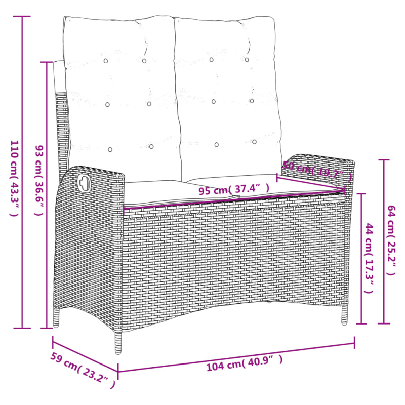 • Abmessungen in Sitzposition: 104 x 59 x 93 cm (B x T x H)