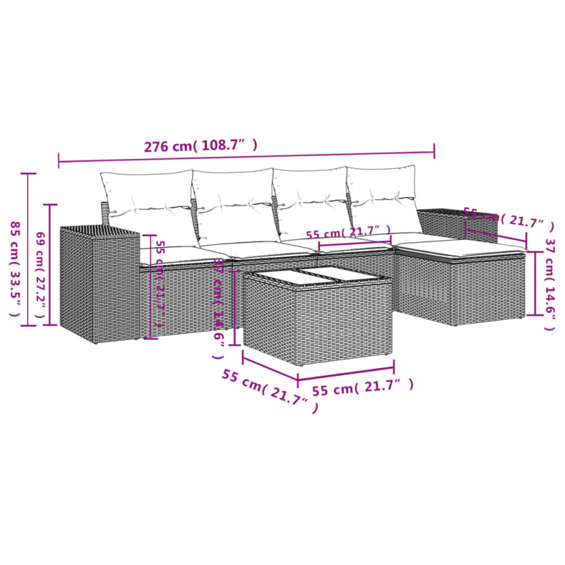 6-tlg. Garten-Sofagarnitur mit Kissen Braun Poly Rattan