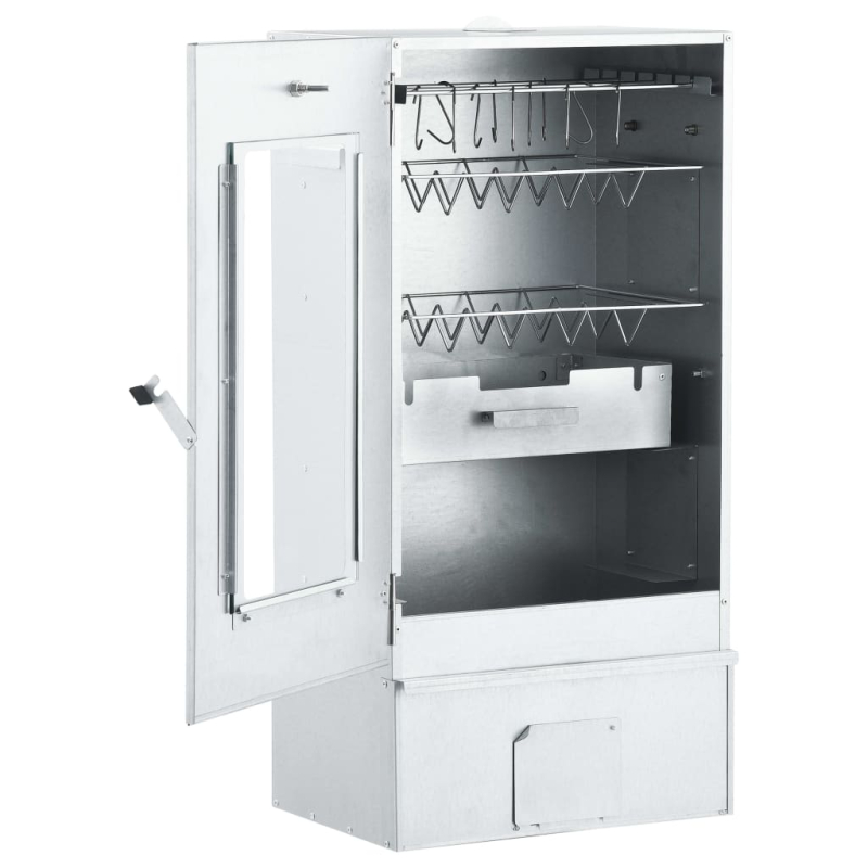 Mit diesem multifunktionalen Räucherofen mit Holzspänen und Kaltrauchgenerator kannst du ein Festmahl zubereiten und eine gemütliche Zeit im Freien mit deiner Familie genießen! Langlebiges Material: Stahl ist ein außergewöhnlich hartes und starkes Material. Er bietet Robustheit und Stabilität. Die Verzinkung bietet einen besseren Schutz gegen Rost und ist für Produkte geeignet, die im Freien verwendet werden.Viel Platz zum Räuchern: Der Outdoor-Smoker bietet viel Platz zum Räuchern von Fleisch, Fisch, Würstchen und mehr. Die mitgelieferten S-förmigen Haken und Roste erleichtern die Zubereitung der Speisen.Mit Thermometer: Der Räucherofen ist mit einem Thermometer ausgestattet, um die Kammertemperatur zu überprüfen. Dank des Glasfensters kannst du zudem das Grillgut im Inneren im Auge behalten, um die besten Grillergebnisse zu erzielen.Kaltrauchgenerator: Fülle ihn einfach mit Sägemehl und zünde ihn mit einem Teelicht an, bis das Sägemehl anfängt, seine Farbe zu wechseln. Danach kann das Teelicht entfernt und der Kaltraucherzeuger in den Räucherschrank gelegt werden. Dank des kompakten, quadratischen Gitters brennen die Räucherspäne für bis zu 16 Stunden gleichmäßig und langsam ab. Achtung:Der Grill darf nicht in geschlossenen und/oder bewohnbaren Bereichen wie Häusern, Zelten, Wohnwagen, Wohnmobilen und Booten verwendet werden. Ansonsten besteht die Gefahr einer Kohlenmonoxidvergiftung, die zum Tod führen kann.