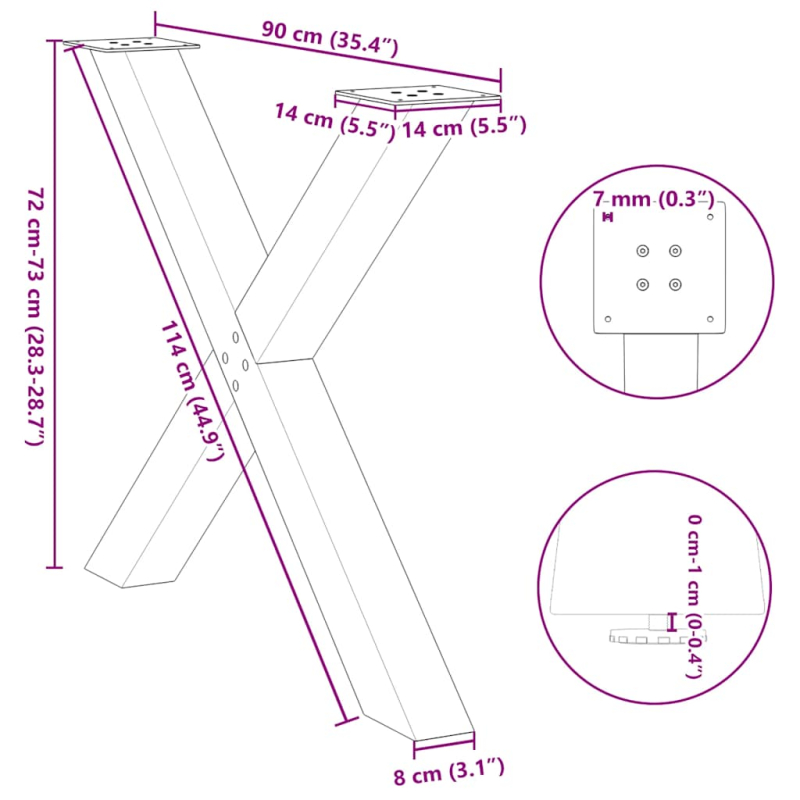 Diese Esstischbeine verbinden Form und Funktion. Sie sind die ideale Wahl, um deinen Esstisch individuell zu gestalten. Langlebiges Material: Dieses Möbeltischbein ist aus pulverbeschichtetem Stahl gefertigt, was es robust und langlebig macht.Stabile Konstruktion: Das X-förmige Design des Metalltischbeins gewährleistet, dass es eine schwere Tischplatte tragen kann.Praktisches Design: Dieses Schreibtischbein ist mit verstellbaren Nivellierfüßen ausgestattet, die auch auf unebenen Böden für Stabilität sorgen und Bodenkratzer minimieren. Außerdem verfügt die Halterung über vorgebohrte Löcher und mitgelieferte Schrauben, mit denen das Bein an der Tischplatte befestigt werden kann (nicht im Lieferumfang enthalten), was die Montage erleichtert.Moderne Ästhetik: Das Tischbein hat klare Linien und ein geometrisches Design, um das Gesamtbild des Möbels zu verbessern. Und es passt zu jeder Tischplatte mit einer geeigneten Größe. Gut zu wissen:Die Lieferung umfasst nur die Tischbeine. Die Tischplatte ist nicht im Lieferumfang enthalten.