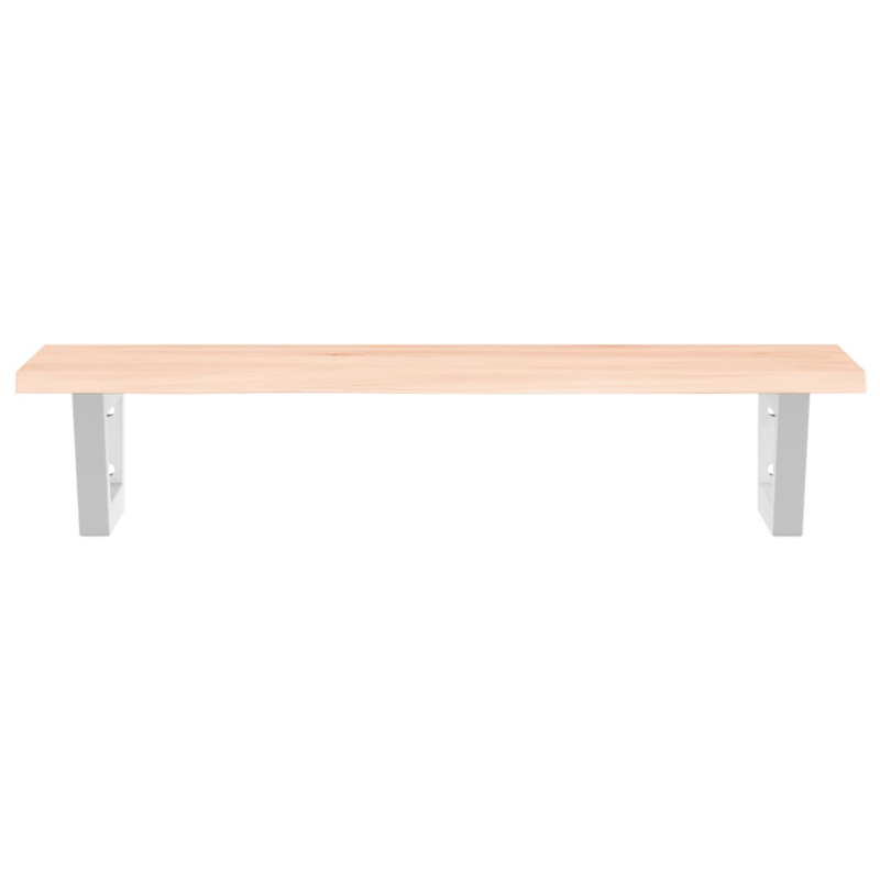 Das Regal lässt sich sicher an der Wand befestigen und bietet eine elegante und platzsparende Lösung für dein Badezimmer. Robust und langlebig: Diese Waschtisch-Platte hat Stahlhalterungen und eine Eichenholz-Platte, wodurch sie robust, stabil und langlebig ist.Platzsparend: Das Schweberegal bietet reichlich Platz für Cremes und Kleinigkeiten. Dank der Trapezform der Halterungen lassen sich auch Handtücher oder andere Sachen platzsparend darauf aufhängen.Einfache Verwendung: Die Holzplatte ist nicht vorgebohrt, sodass dein Waschbecken je nach Bedarf links, rechts oder in der Mitte angebracht werden kann. Dank der vorgebohrten Löcher in der Halterung lässt sich die Ablage am Waschtisch oder an der Wand mühelos befestigen.Vielseitig einsetzbar: Dank ihres modernen Designs schafft die Ablage zusätzlichen Stauraum und fügt sich harmonisch in die unterschiedlichsten Einrichtungen ein. Gut zu wissen:Die Schrauben sind nicht im Lieferumfang enthalten. Du kannst die Schrauben anhand von den folgenden Informationen separat erwerben.Wandbefestigung: 2 x M8-Dehnschraube pro HalterungHolzplatte: 2 x M5x18-Schraube (T=2) oder 2 x M5x20-Schraube (T=2,5/4 cm) pro HalterungAls Naturprodukt kann Holz Aststellen und Unebenheiten aufweisen, die wir mit schwarzer Füllung ausfüllen, um ein glattes Aussehen zu gewährleisten.
