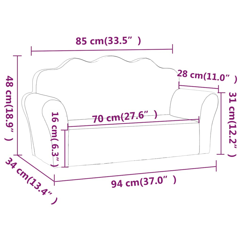 Dieses weiche 2-Sitzer-Kindersofa bietet den Kleinen einen bequemen Platz zum Lesen, Spielen oder Entspannen. Komfortables Material: Plüsch fühlt sich außergewöhnlich weich und angenehm an. Er ist auch langlebig und lässt sich einfach reinigen.Abnehmbarer Bezug: Der abnehmbare Bezug dieser Kindercouch lässt sich dank Klettverschluss einfach abnehmen und waschen.Weiches und komfortables Erlebnis: Die Kindercouch ist mit dickem Schaumstoff gepolstert und sorgt für ein weiches und gemütliches Gefühl. Außerdem bieten die Rückenlehne und die breiten Armlehnen sicheren Halt.Sicher und leicht: Das Kindersofa hat keine scharfen Ecken oder harten Kanten, um die Sicherheit deines Kindes zu gewährleisten. Gut zu wissen:Dieses Produkt ist vakuumverpackt, sodass es den Transport sicher übersteht. Der Artikel nimmt nach dem Auspacken von selbst seine Form an.