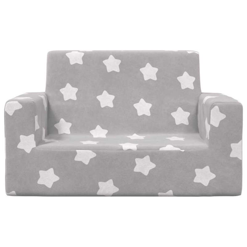 Kindersofa 2-Sitzer Hellgrau mit Sternen Weich Plüsch