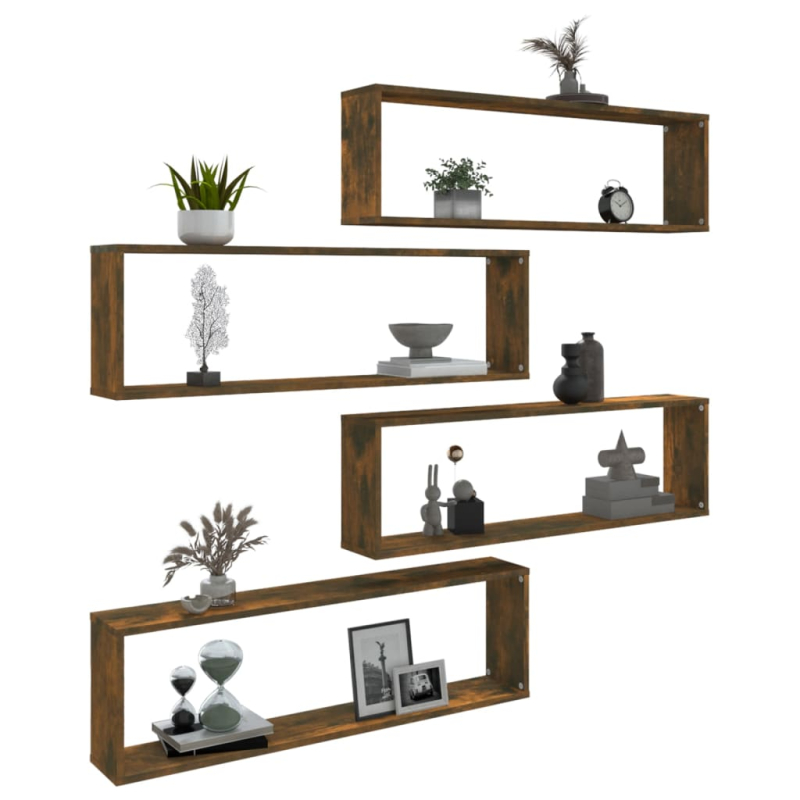 Wandregale 4 Stk. Räuchereiche 100x15x30 cm Holzwerkstoff
