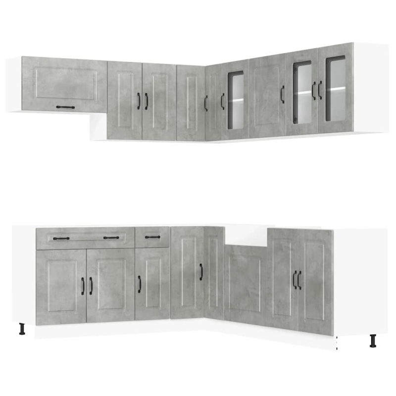 11-tlg. Küchenschrank-Set Kalmar Betongrau Holzwerkstoff