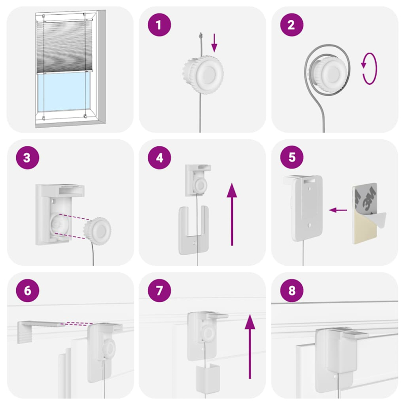 WARNUNG!Strangulationsgefahr für Kinder durch Schlaufen in Zugschnüren, Ketten, Bändern und der inneren Schnur, die dieses Produkt lenken!. Um Strangulierung und ein Verheddern zu vermeiden, halten Sie die Schnüre außerhalb der Reichweite von Kleinkindern. Schnüre können sich um den Hals eines Kindes wickeln. Betten, Babybett und Möbel in einer sicheren Entfernung von den Schnüren der Fensterrollos aufstellen. Binden Sie keine Kabel zusammen. Achten Sie darauf, dass sich die Schnüre nicht verdrehen und eine Schlaufe bilden. WARNUNG!Kinder können stranguliert werden, wenn dieses Sicherheitsgerät nicht montiert und eingestellt wurde. Lesen Sie die Bedienungsanleitung sorgfältig und bauen Sie das Gerät dementsprechend auf. GPSR