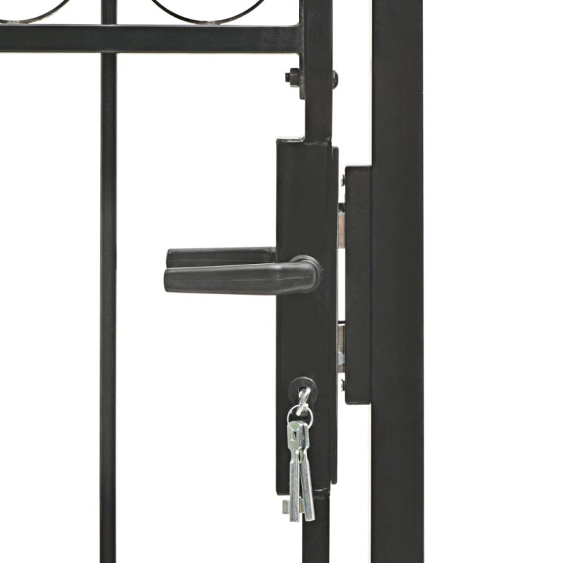 Dieses Gartentor im zeitgenössischen Stil dient als praktischer Eingang zu Ihrem Garten, den er stilvoll abtrennt. Äußerst stabil und langlebig, wird dieses Tor eine praktische Absperrung für Ihren Garten, Innenhof oder Ihre Terrasse darstellen. Mit seiner eleganten, gewölbten Form und robusten, horizontalen Streben zur Verstärkung des Rahmens bietet unser Gartentor ein hohes Maß an Sicherheit und bildet einen fabelhaften Eingang zu Ihrem Grundstück. Das aus hartem Stahl gefertigte Tor ist pulverbeschichtet und somit gegen Rost und Korrosion geschützt. Dieses Gartentor steht für Robustheit, Stabilität und Korrosionsbeständigkeit.