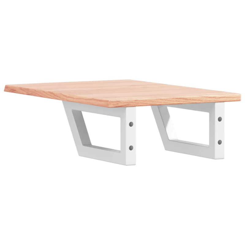 Das Regal lässt sich sicher an der Wand befestigen und bietet eine elegante und platzsparende Lösung für dein Badezimmer. Robust und langlebig: Diese Waschtisch-Platte hat Stahlhalterungen und eine Eichenholz-Platte, wodurch sie robust, stabil und langlebig ist.Platzsparend: Das Schweberegal bietet reichlich Platz für Cremes und Kleinigkeiten. Dank der Trapezform der Halterungen lassen sich auch Handtücher oder andere Sachen platzsparend darauf aufhängen.Einfache Verwendung: Die Holzplatte ist nicht vorgebohrt, sodass dein Waschbecken je nach Bedarf links, rechts oder in der Mitte angebracht werden kann. Dank der vorgebohrten Löcher in der Halterung lässt sich die Ablage am Waschtisch oder an der Wand mühelos befestigen.Vielseitig einsetzbar: Dank ihres modernen Designs schafft die Ablage zusätzlichen Stauraum und fügt sich harmonisch in die unterschiedlichsten Einrichtungen ein. Gut zu wissen:Die Schrauben sind nicht im Lieferumfang enthalten. Du kannst die Schrauben anhand von den folgenden Informationen separat erwerben.Wandbefestigung: 2 x M8-Dehnschraube pro HalterungHolzplatte: 2 x M5x18-Schraube (T=2) oder 2 x M5x20-Schraube (T=2,5/4 cm) pro HalterungAls Naturprodukt kann Holz Aststellen und Unebenheiten aufweisen, die wir mit schwarzer Füllung ausfüllen, um ein glattes Aussehen zu gewährleisten.